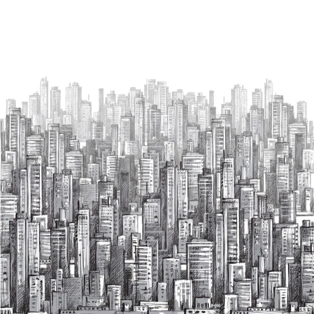 3D Pencil Drawing Multi-Building Pattern Wallpaper, Black and White Peel and Stick Wallpaper, Stylish Room Design, Abstract Wallpaper