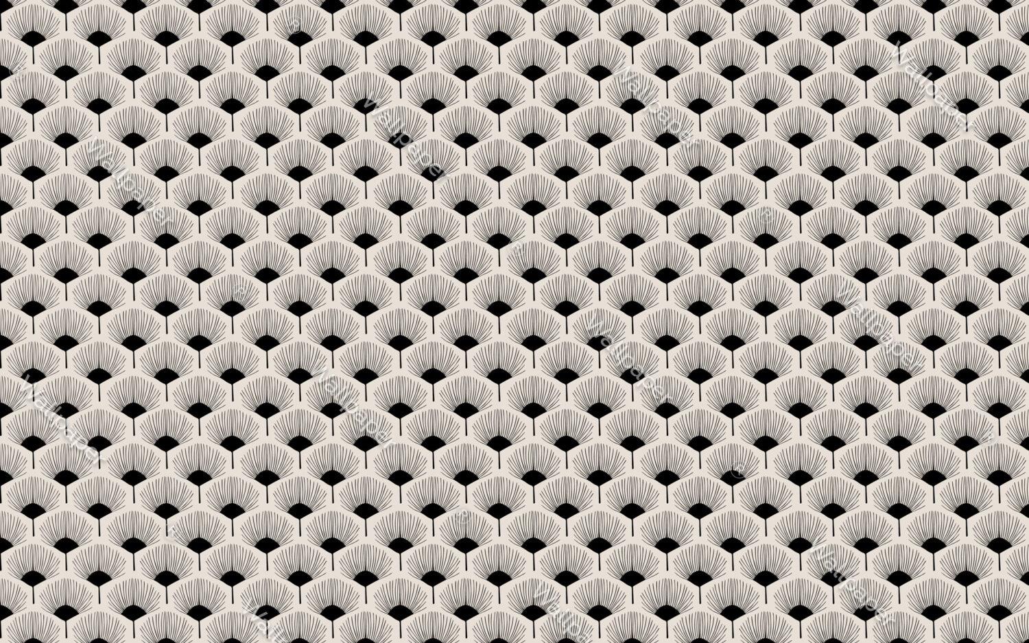 Abstract Black and White Fan Flowers Wallpaper, Peel and Stick Wallpaper, Stylish Room Design, Design Wallpaper, Modern Artistic Wallpaper