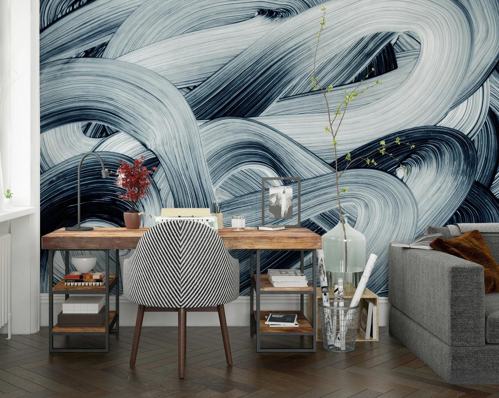 Abstract Blue Brush Marks Wallpaper, Blue Waves 3D Bathroom Wallpaper, Stylish Modern Artistic Poster, Boho Wallpaper