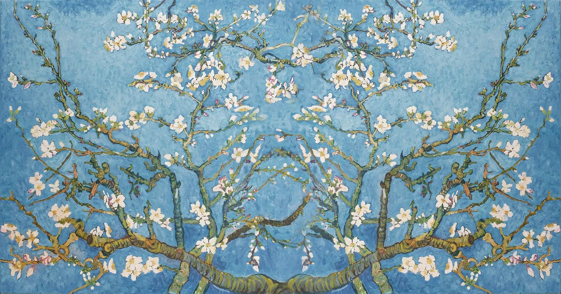 Almond Tree with Spring Flowers Wallpaper, Floral Wallpaper, Romantic Wall Mural, Peel and Stick Wallpaper, illustration Drawing Wallpaper