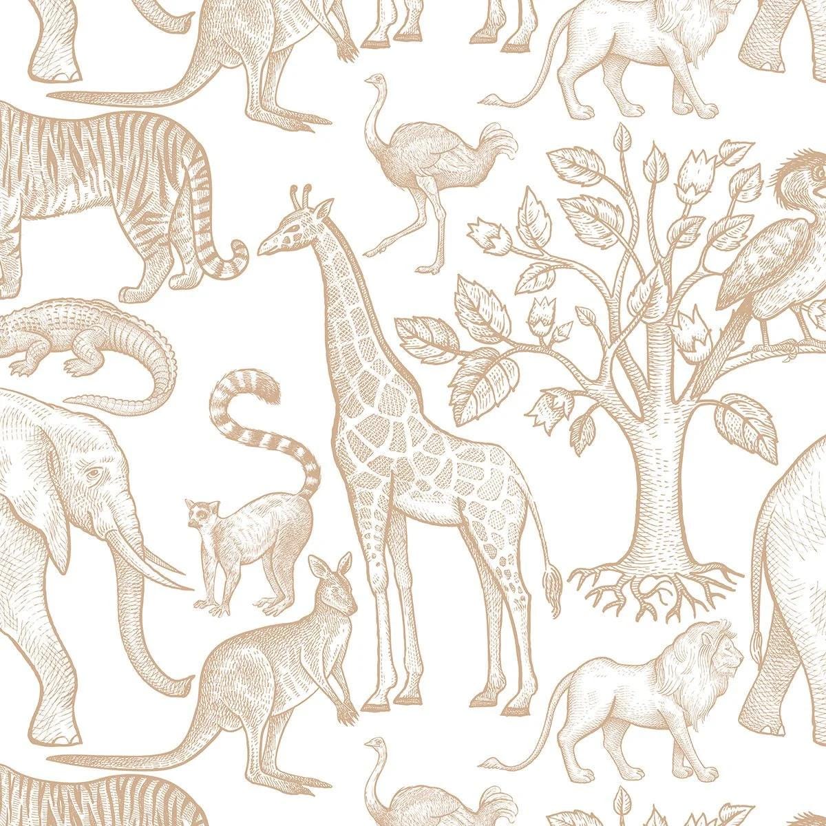 Beige Monochrome Animals Child Wallpaper, Line Art Forest Baby Wallpaper, Cute Animals Wallpaper Nursery, Drawwing Wallpaper for Kidsroom