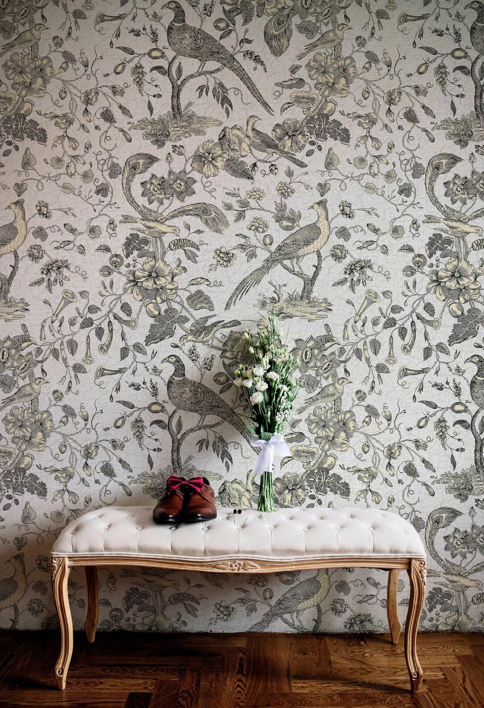 Bird Among The Eaten Trees Wallpaper, Bohemian Wallpaper, American Style Nature Mural, Peel and Stick Wallpaper, Tropical Wallpaper