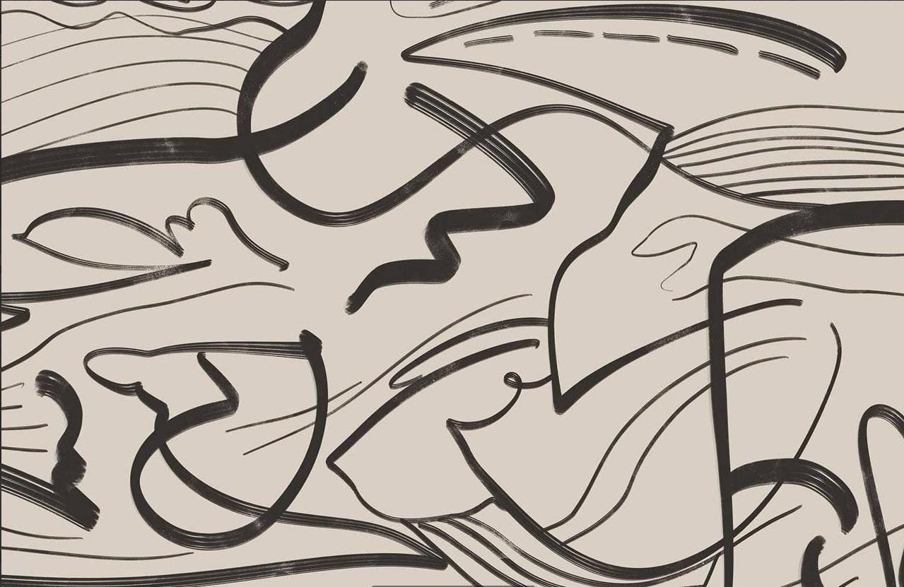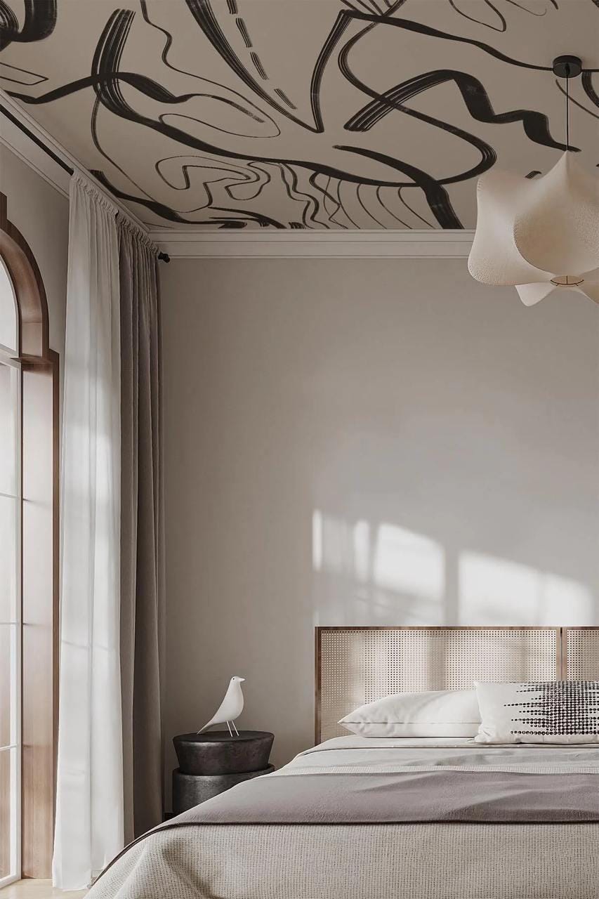 Black Abstract Lines on Beige Background Wallpaper, Peel and Stick Wallpaper, Stylish Room Design, Black Wallpaper, Geometric Wallpaper