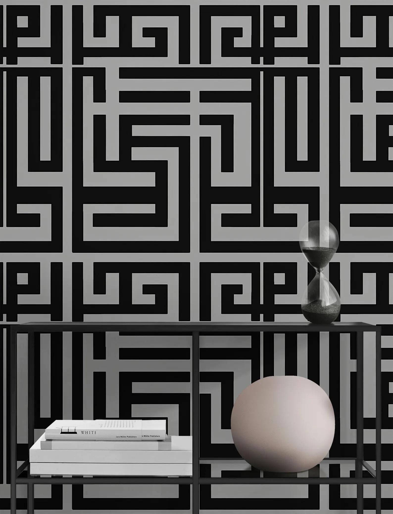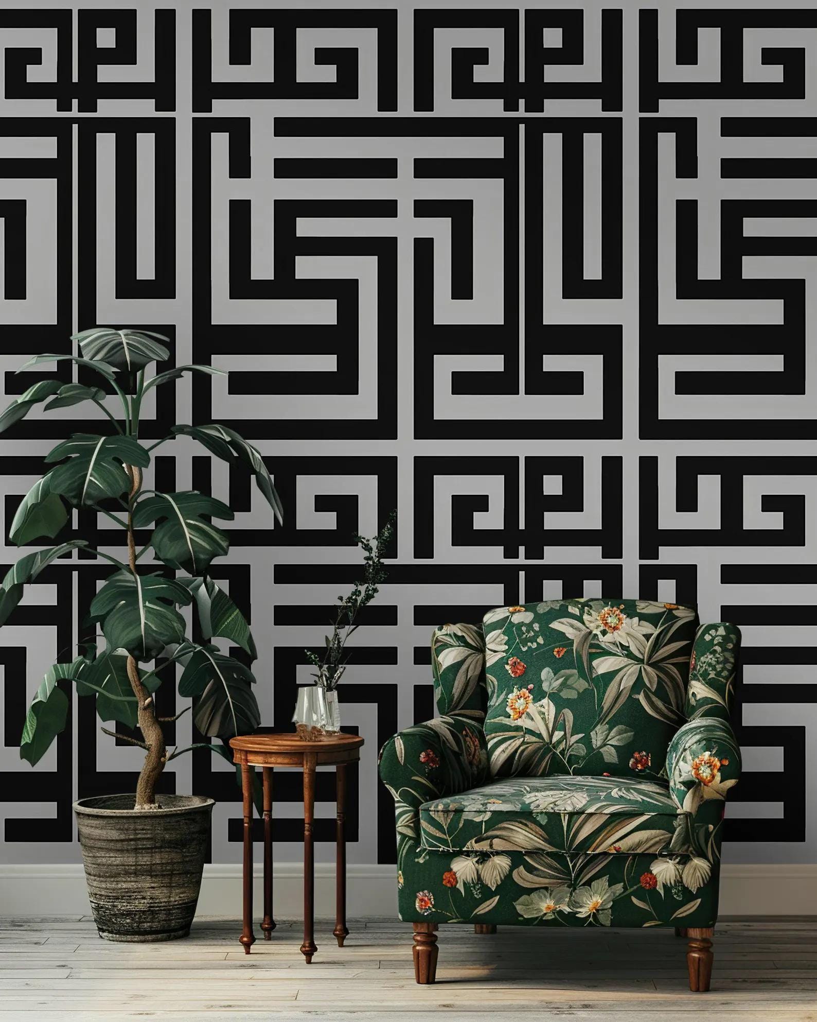 Black and Gray Shape Wallpaper, Peel and Stick Wallpaper, Stylish Wall Design, Black Wallpaper, Geometric Pattern Wallpaper