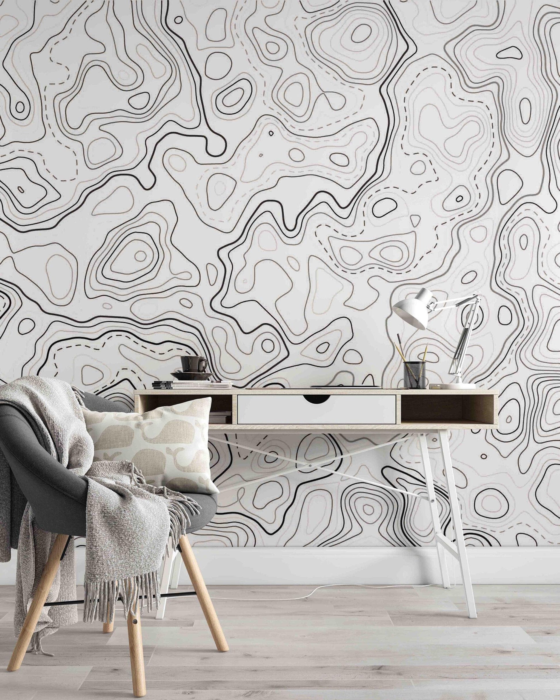 Black and White Topographic Map Patterns Wallpaper, Peel and Stick Wallpaper, Stylish Room Design, Modern Wallpaper, Abstract Wallpaper