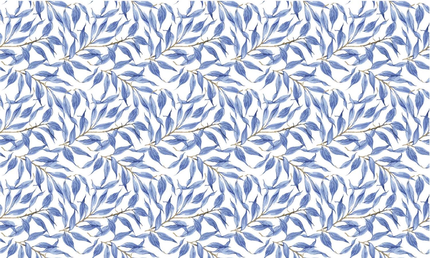 Blue Leaves Watercolor Wallpaper, Bohemian Wallpaper, Leaf Mural, Botany Peel and Stick Wallpaper, Stylish Room Design, Blue Ivy Wallpaper