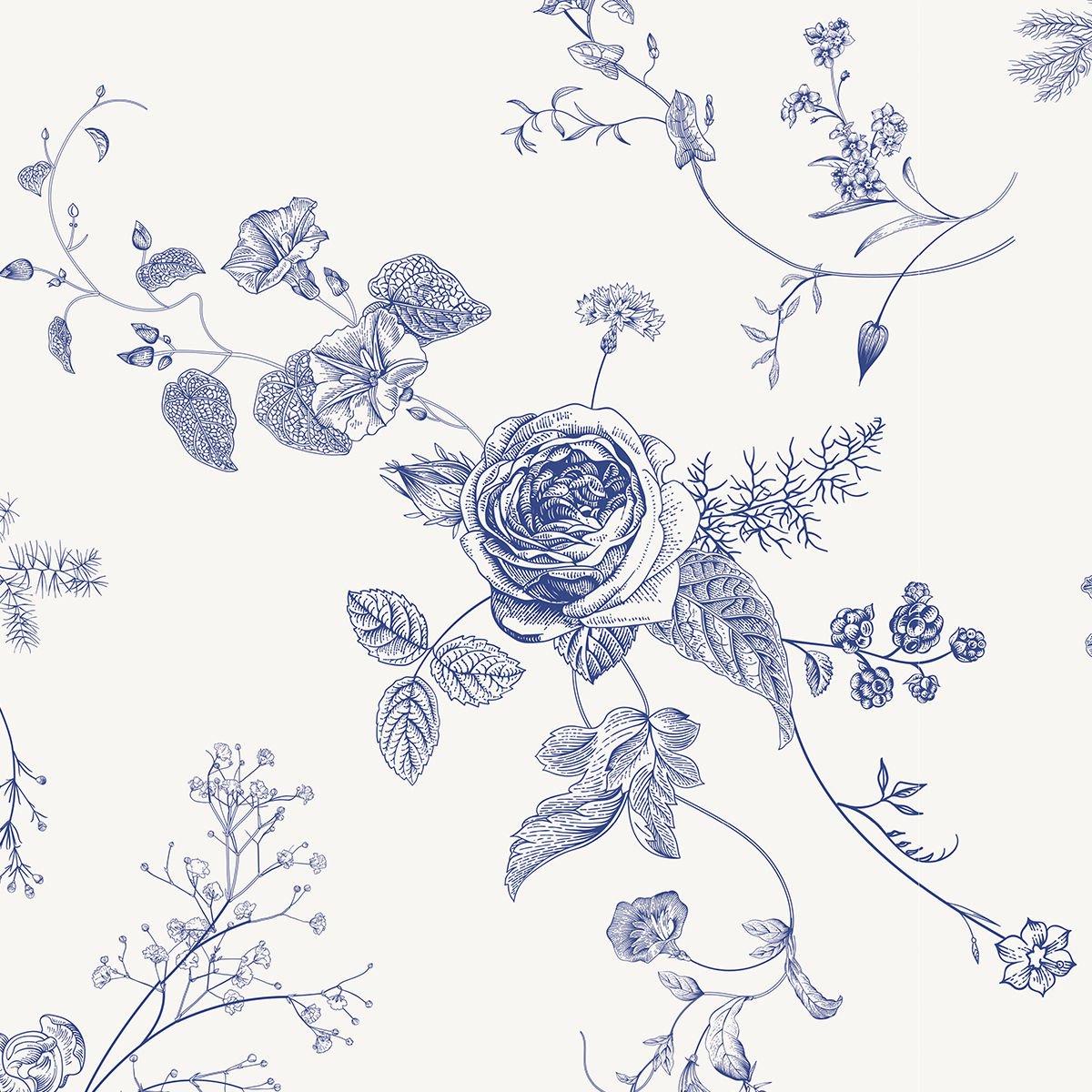 Blue Vintage Flower Wallpaper, Chinese Style Floral Pattern Wall Mural, Romantic Drawing Wall Poster, Bleu Blanc Wallpaper