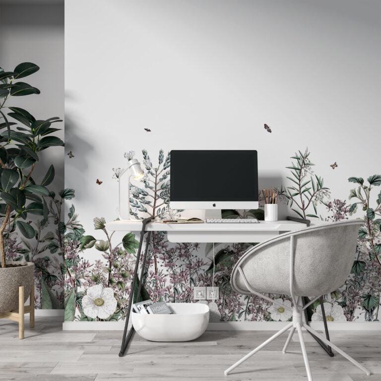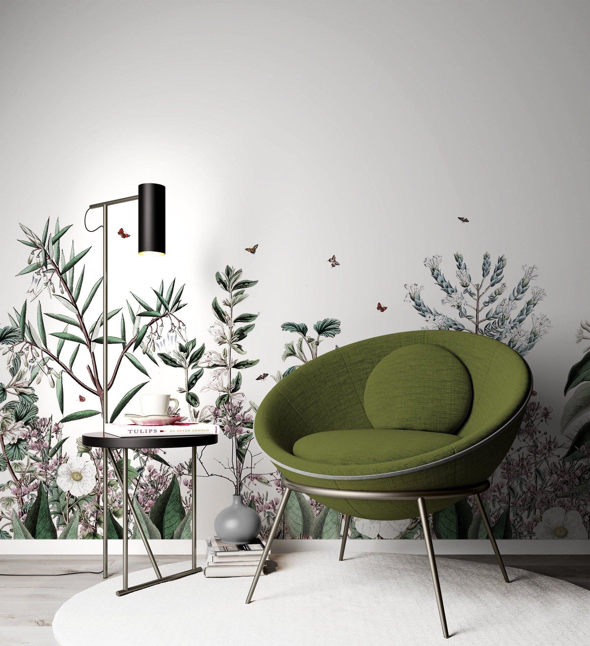 Botanical Garden Plants Flower Wallpaper, Illustration Wallpaper, Peel Stick Watercolor Wallpaper, Mini Flowers Wallpaper, Flowers Mural