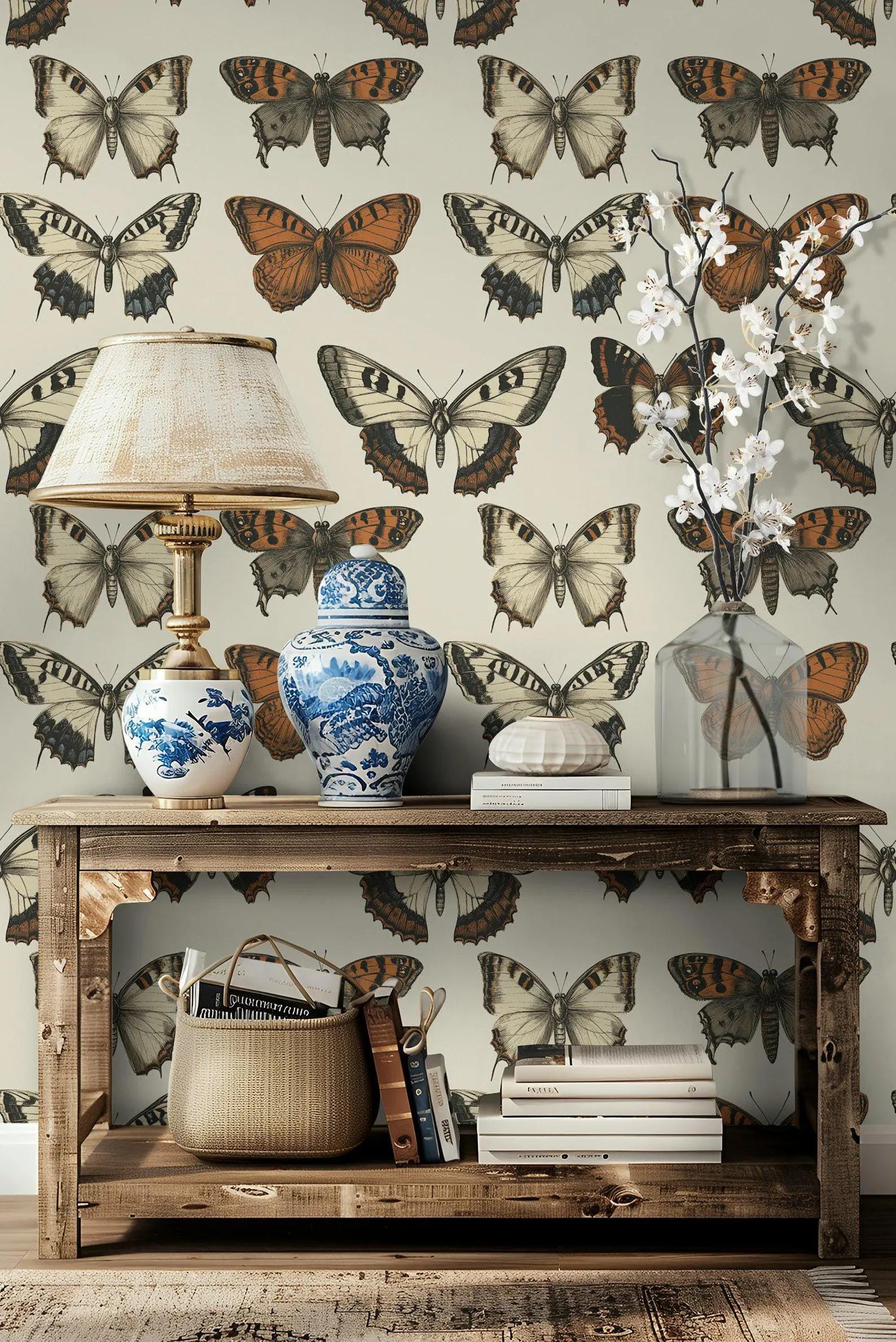 Butterfly Collection Wallpaper, Bohemian Wallpaper, Nature Wall Mural, Peel and Stick Wallpaper, Stylish Room Design, Tropical Wallpaper