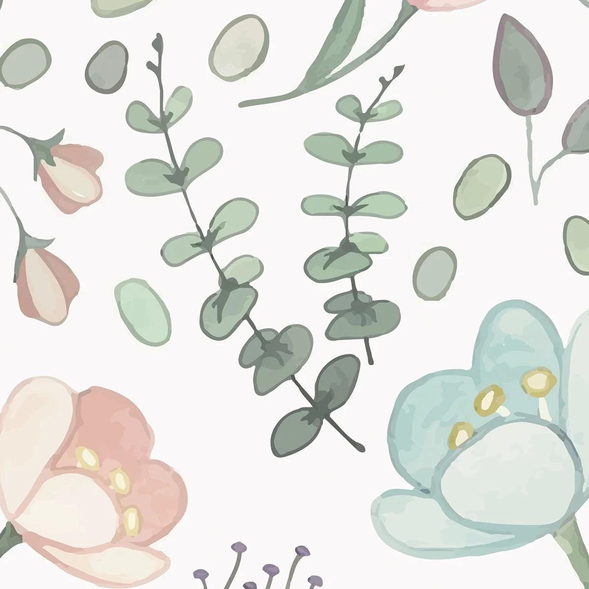 Cherry Blossoms and Green Leaves Wallpaper, Illustration Flowers Garden Baby Girl Wallpaper, Wallpaper Nursery, Watercolor Floral Baby Mural