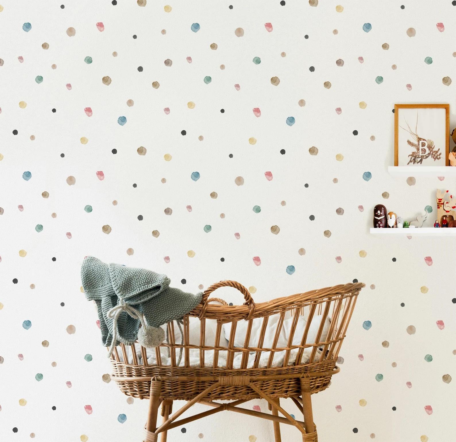 Colorful Polka Dot Pattern on a White Background Kids Wallpaper, Child Wallpaper, Bright Wallpaper Nursery, Funny Baby Room Wallpaper