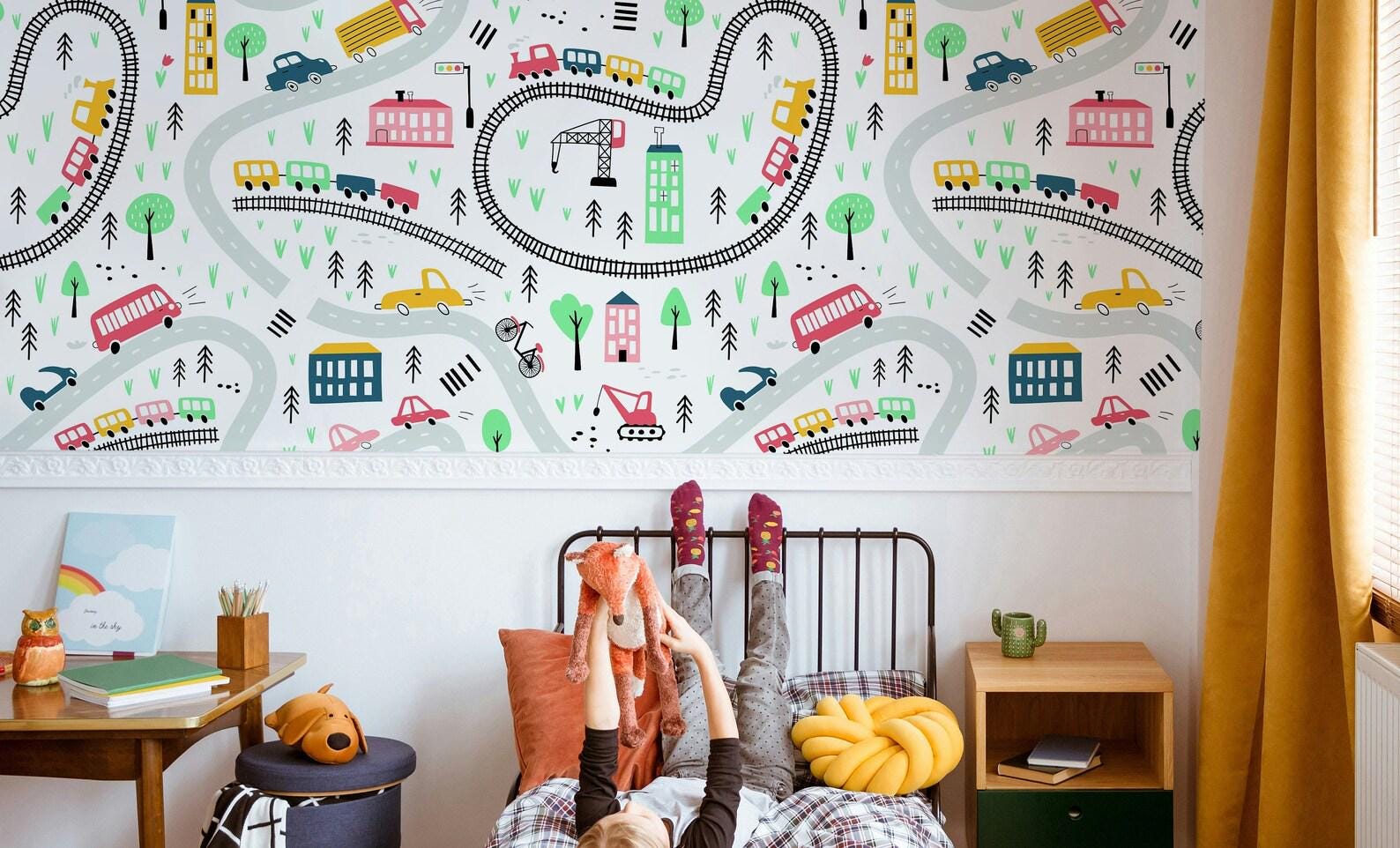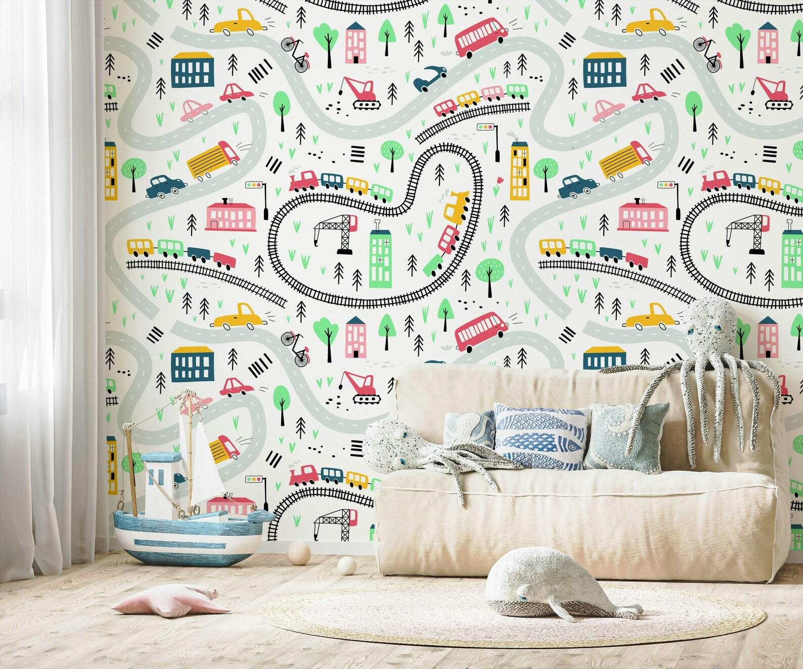 Colourful Vehicles Wallpaper, Funny Wallpaper Nursery, Baby Room Wallpaper, School Wallpaper, Cars and City Traffic Boys Wallpaper