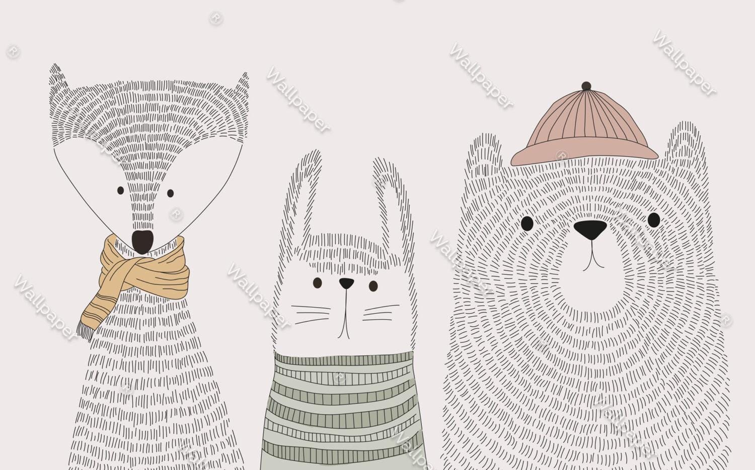 Cute Animals in Linear Gray Tones Wallpaper For Kid'sroom, Wallpaper Nursery, Childrens Wallpaper , Peel and Stick Wallpaper, Baby Wallpaper