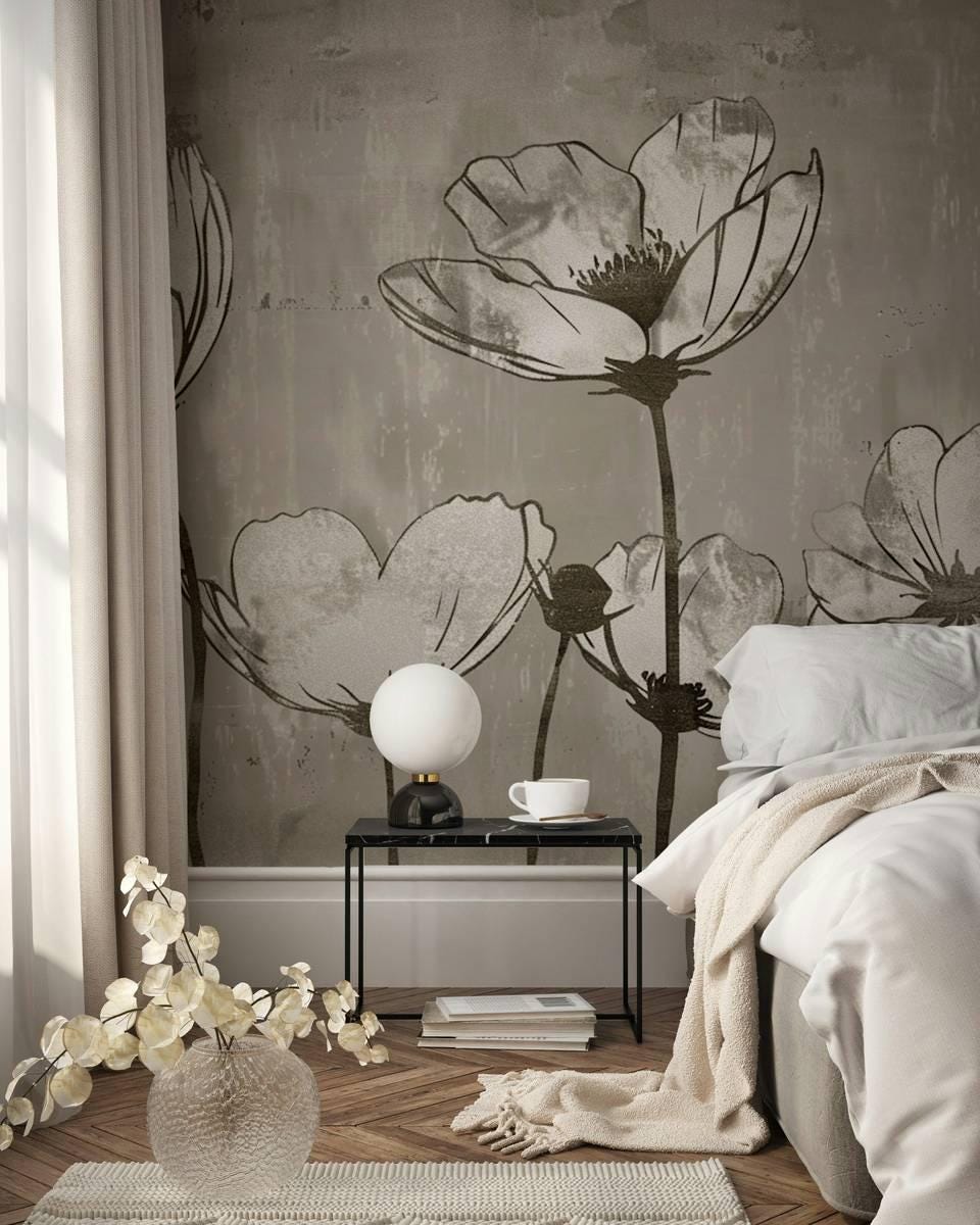 Elegant Dream Wallpaper, Drawwing Flowers Wallpaper, Illustration Wallpaper, Watercolor Wallpaper, Floral Wallpaper, Bohemian Mural