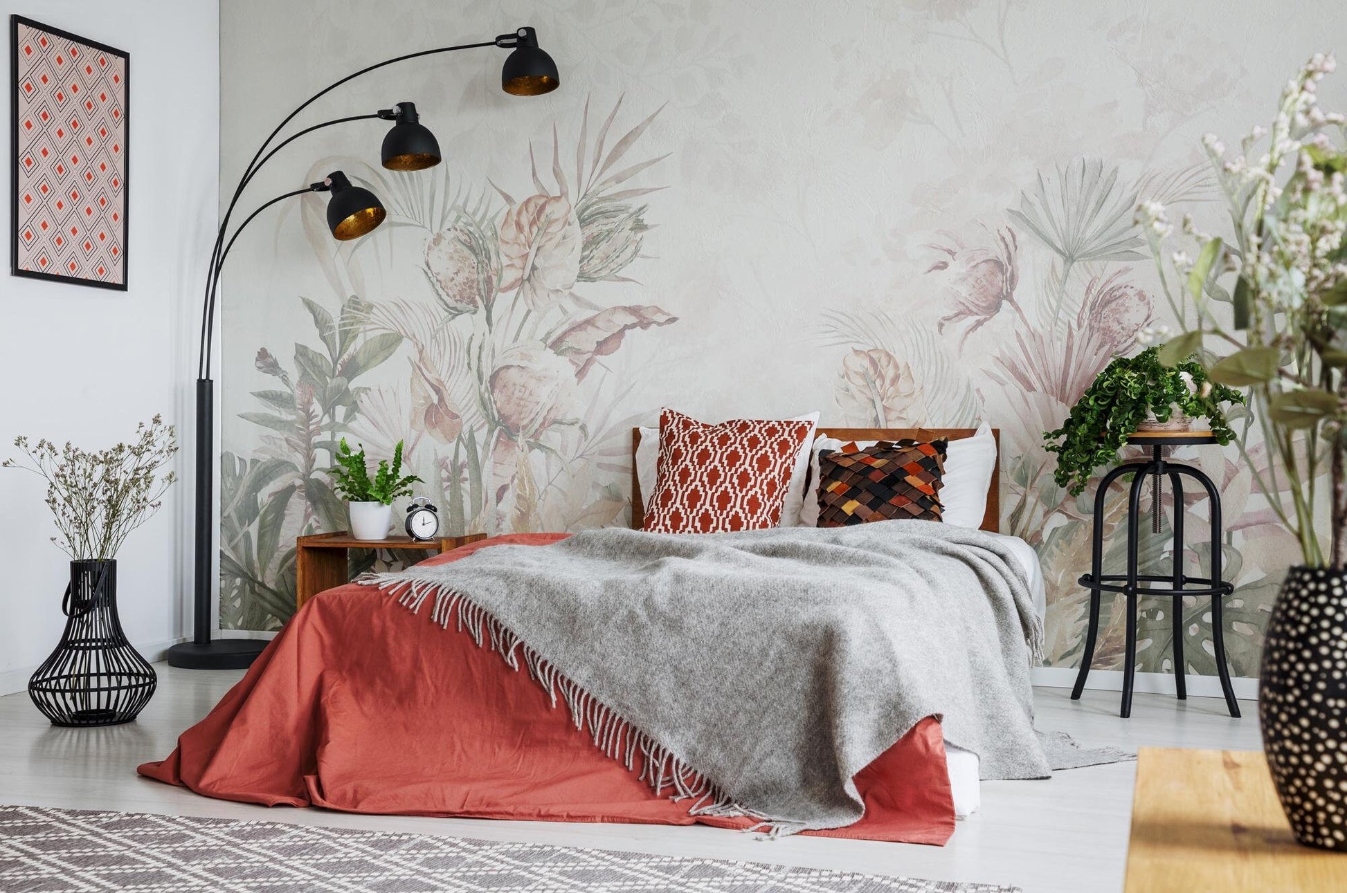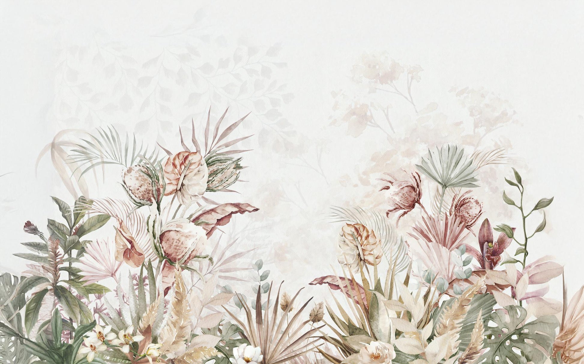 Exotic Flowers Wallpaper in Pastel Tones, Floral Wallpaper, Soft Color Romantic Wall Mural, Peel and Stick Wallpaper, Drawing Wallpaper