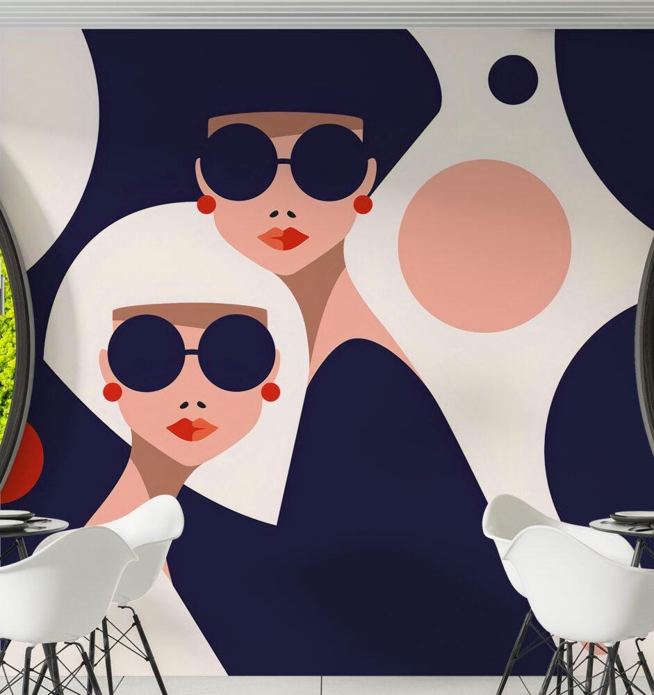 Geometric Pattern Wallpaper with Female Figure , Modern Peel and Stick Wallpaper, Stylish Room Design, Colorful Abstract Pattern Wallpaper