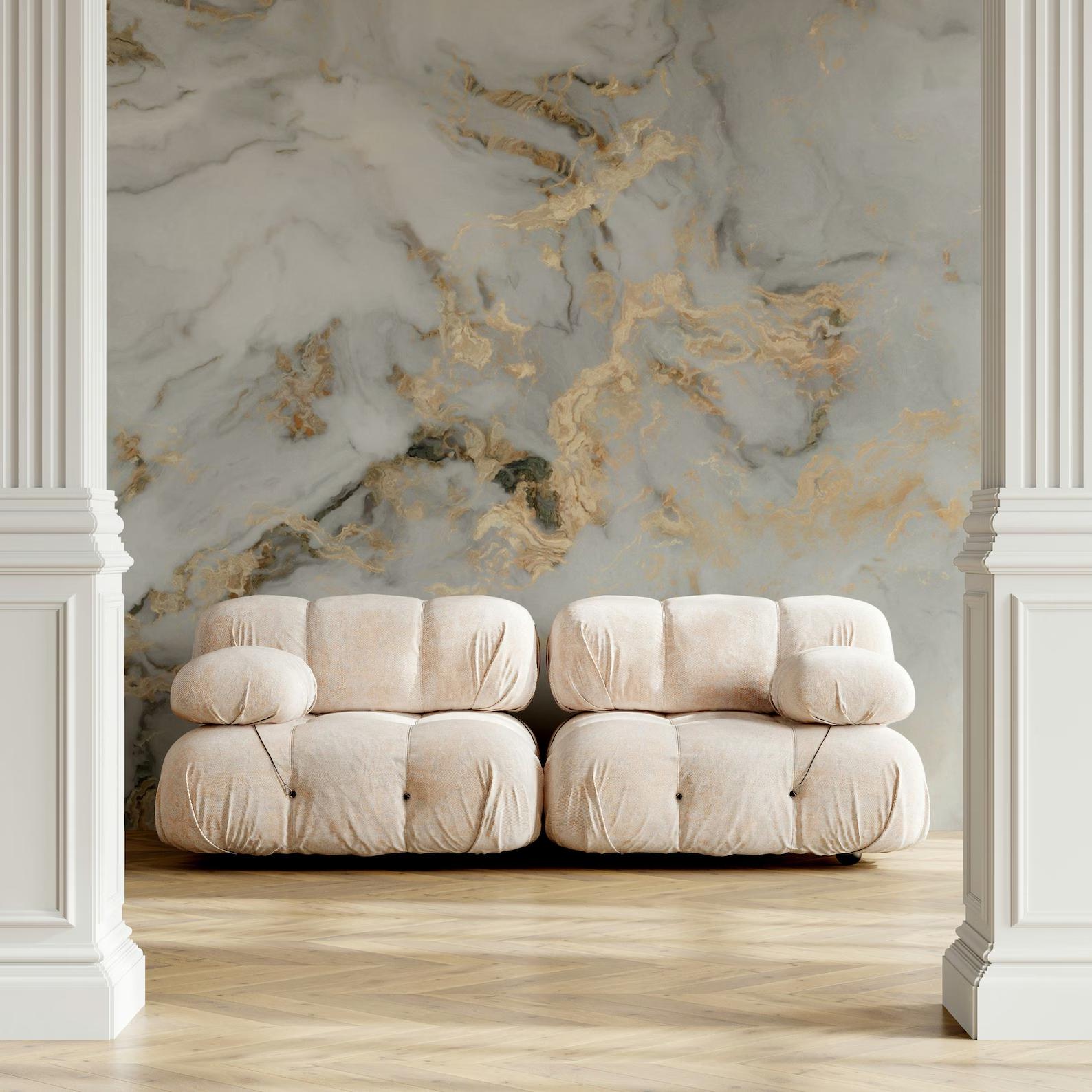 Gold Color Effect Marble Pattern Wallpaper, Peel and Stick Wallpaper, Stylish Room Design, Modern Wallpaper, Natural Look Marble Wall Poster