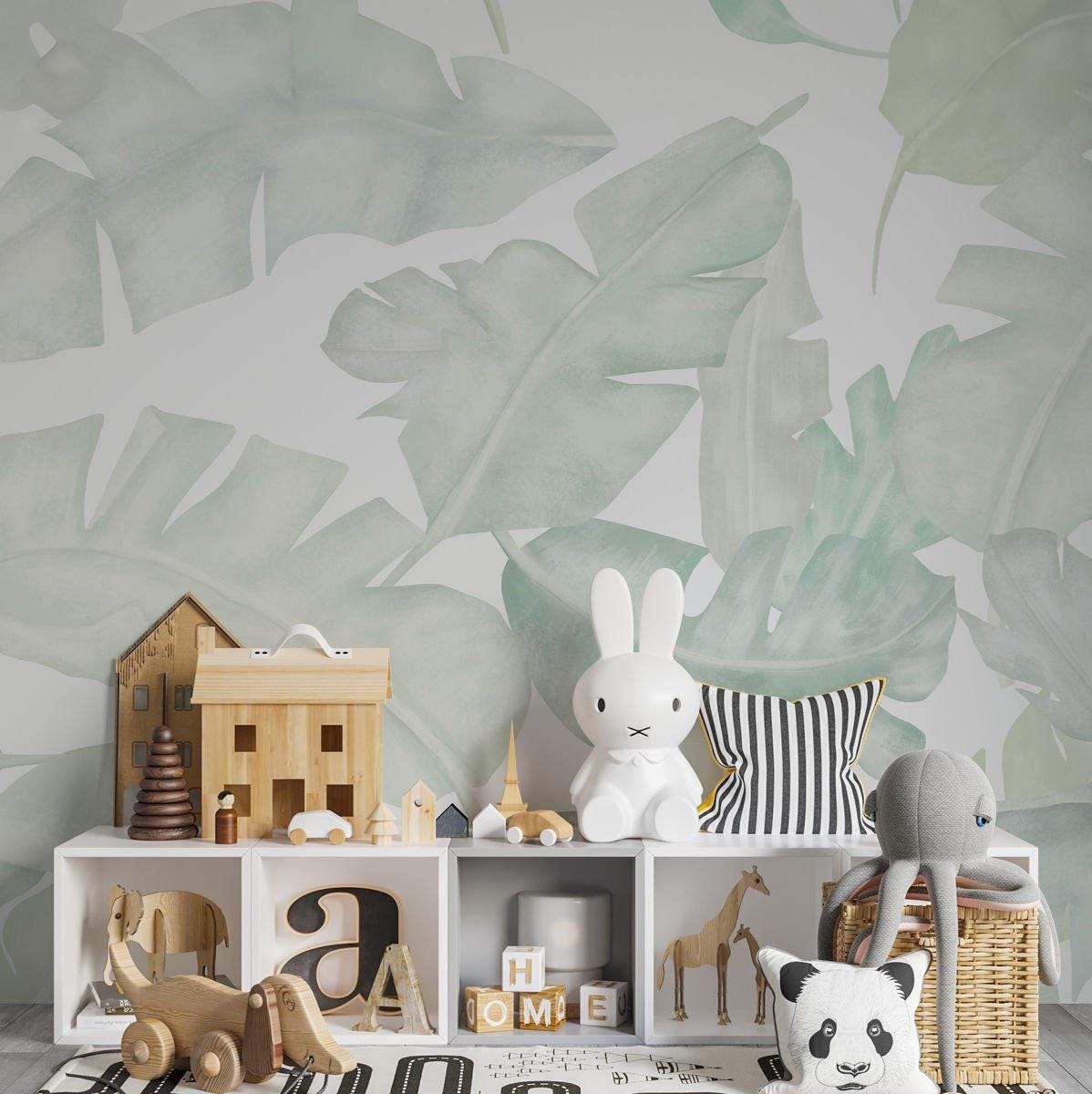 Green leaves Wallpaper For Kidsroom, Tropical Wallpaper Nursery, Nature Kids Wall Mural, Kids Room Wall Poster, Peel & Stick Child Wallpaper