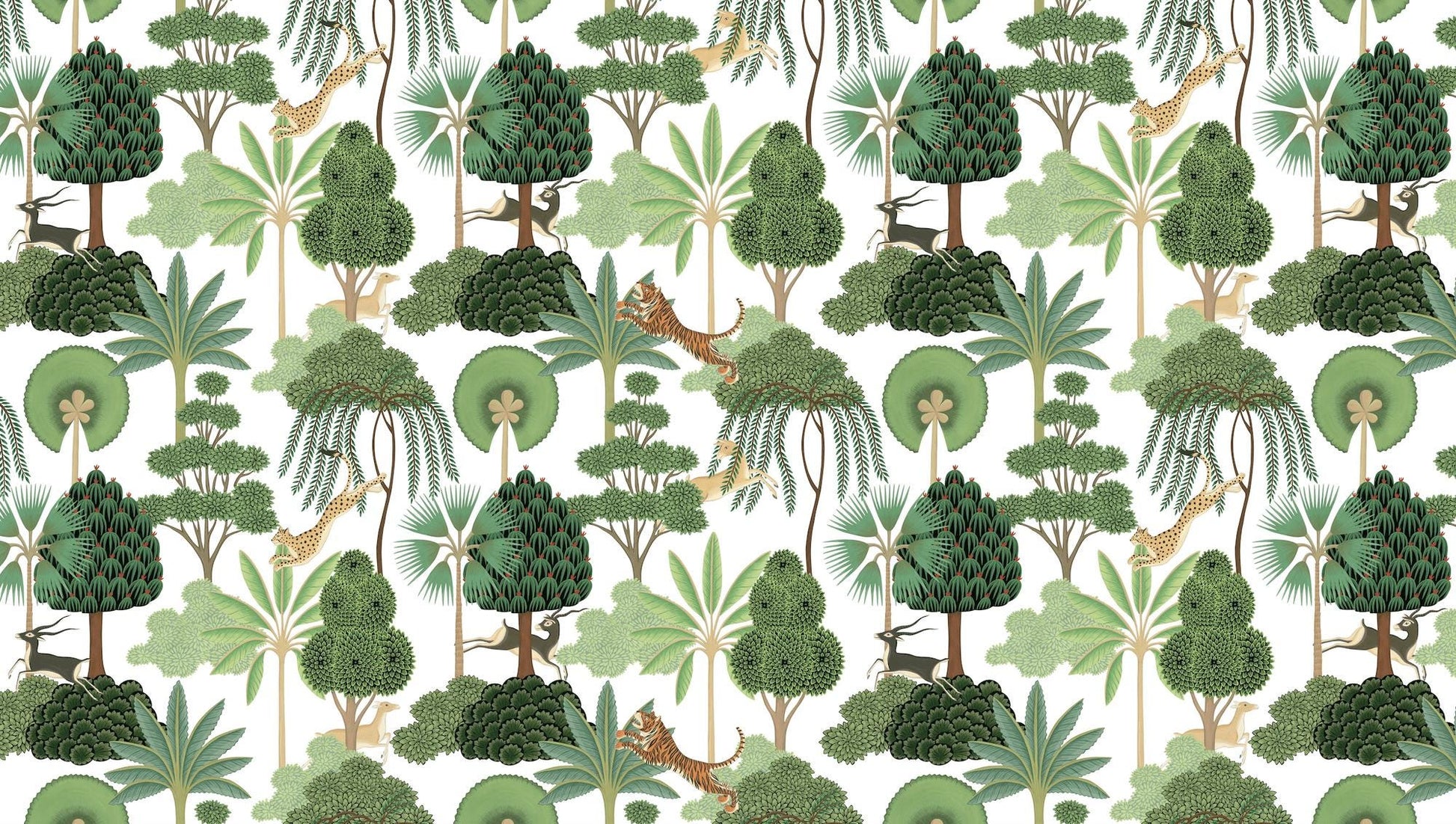 Green Tree Patterned 3D Kids Wallpaper, Deer Tiger Cheetah Children and Baby Wallpaper, Tropical Forest Wallpaper Nursery, Jungle Wallpaper