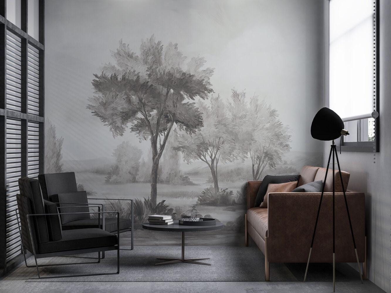 Grey Tone Savanna Trees Wallpaper, Soft Drawwing Wallpaper, Bohemian Wallpaper, Trees Mural, Peel and Stick Wallpaper, Stylish Wall Design