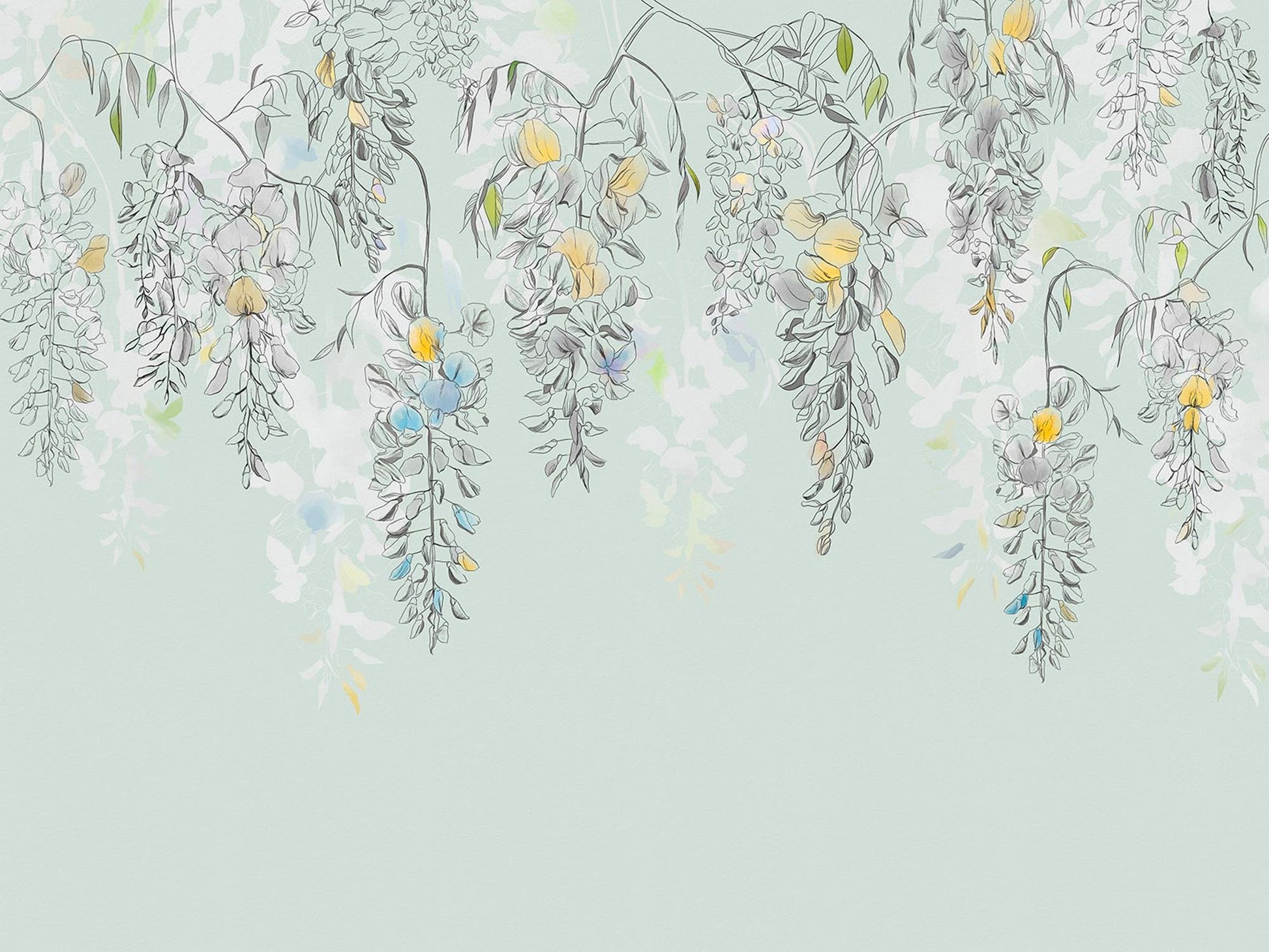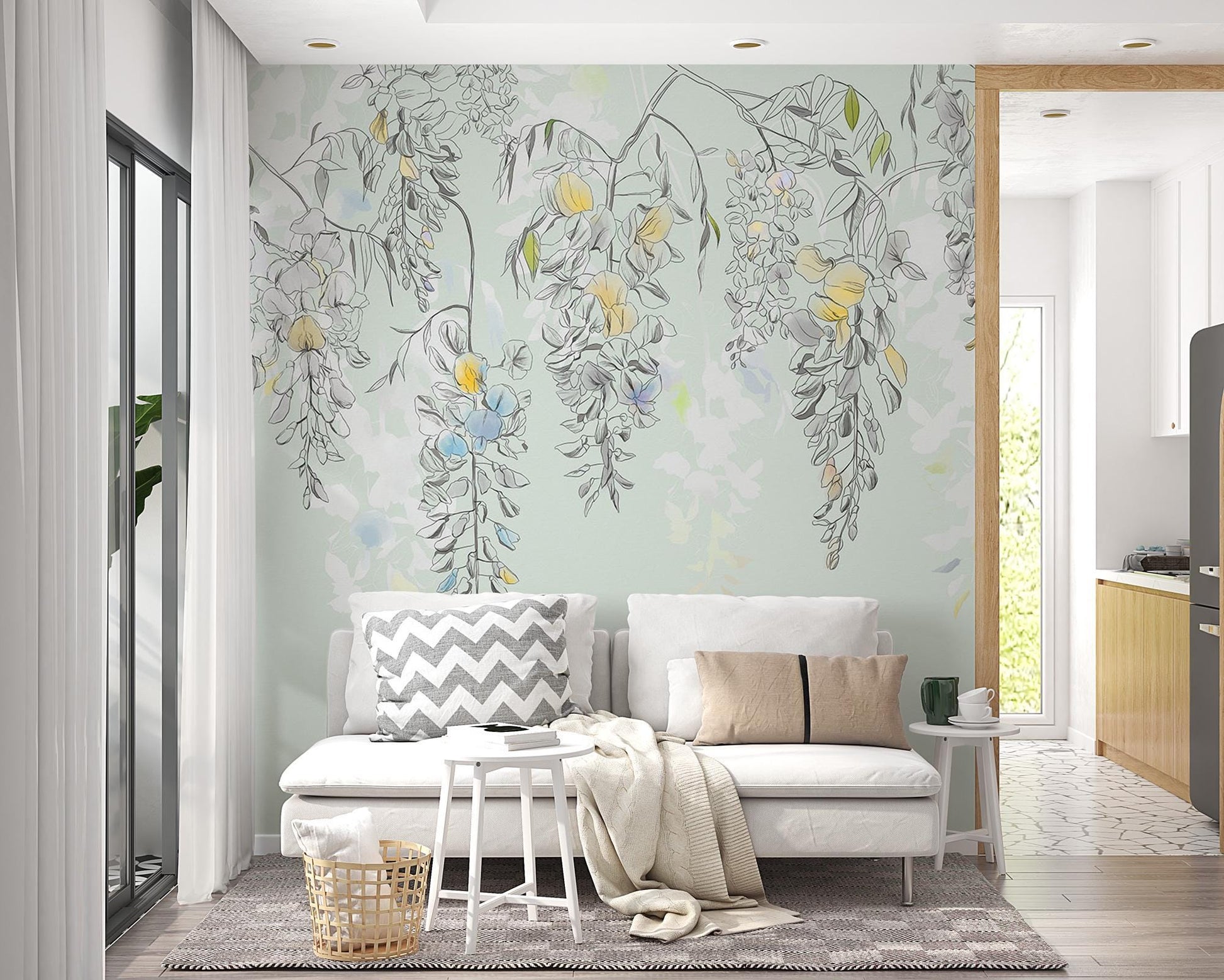 Hanging Vine Flowers Wallpaper, Floral Wallpaper, Colourful Romantic Wall Mural, Peel and Stick Wallpaper, Spring Themed Drawing Wallpaper