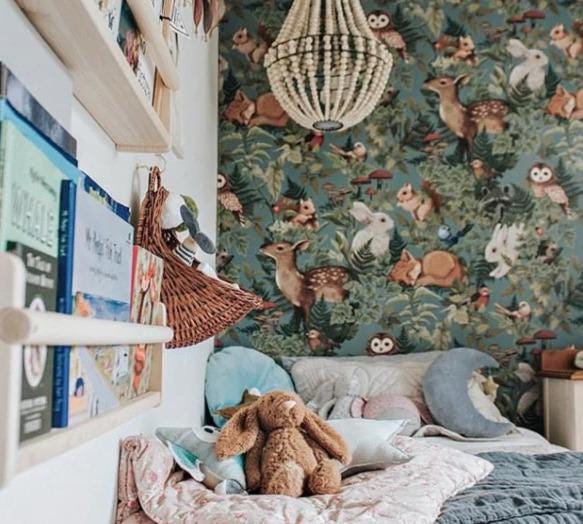 Jimmy Cricket Pattern Wallpaper in Light Colors, illustration Wallpaper Nursery, Peel and Stick Wallpaper, Watercolor Rabbit Child Wallpaper