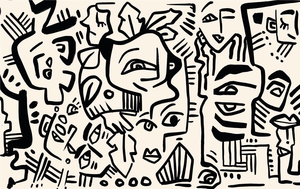 Linear Face Motifs Modern Wallpaper, Black and Beige Peel and Stick Wallpaper, Stylish Room Design, Abstract Wallpaper, Wall Design