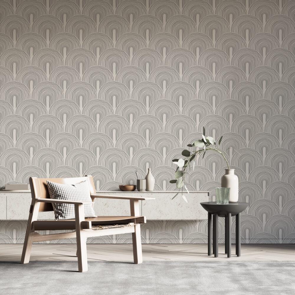 Linear Geometric Style Pattern Wallpaper, Peel and Stick Wallpaper, Stylish Room Design, Gray Wallpaper
