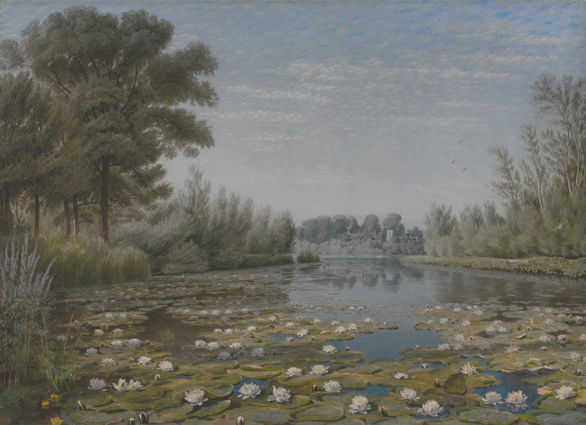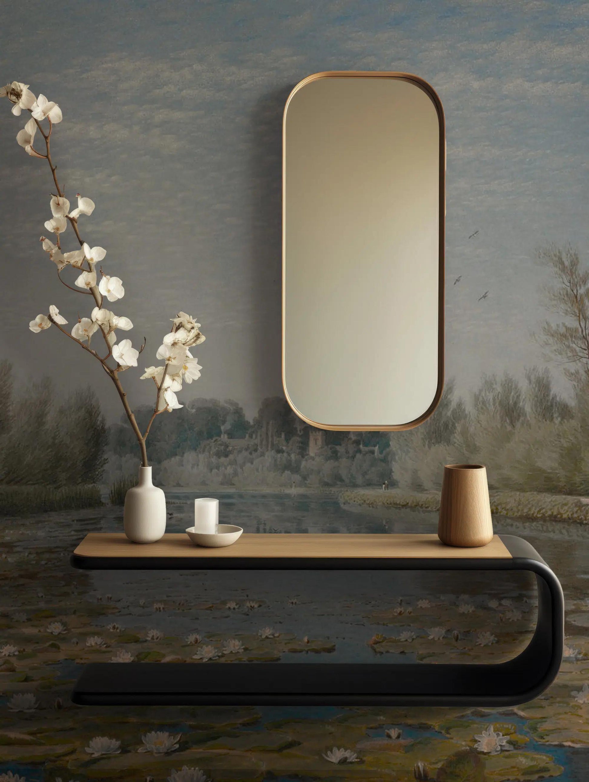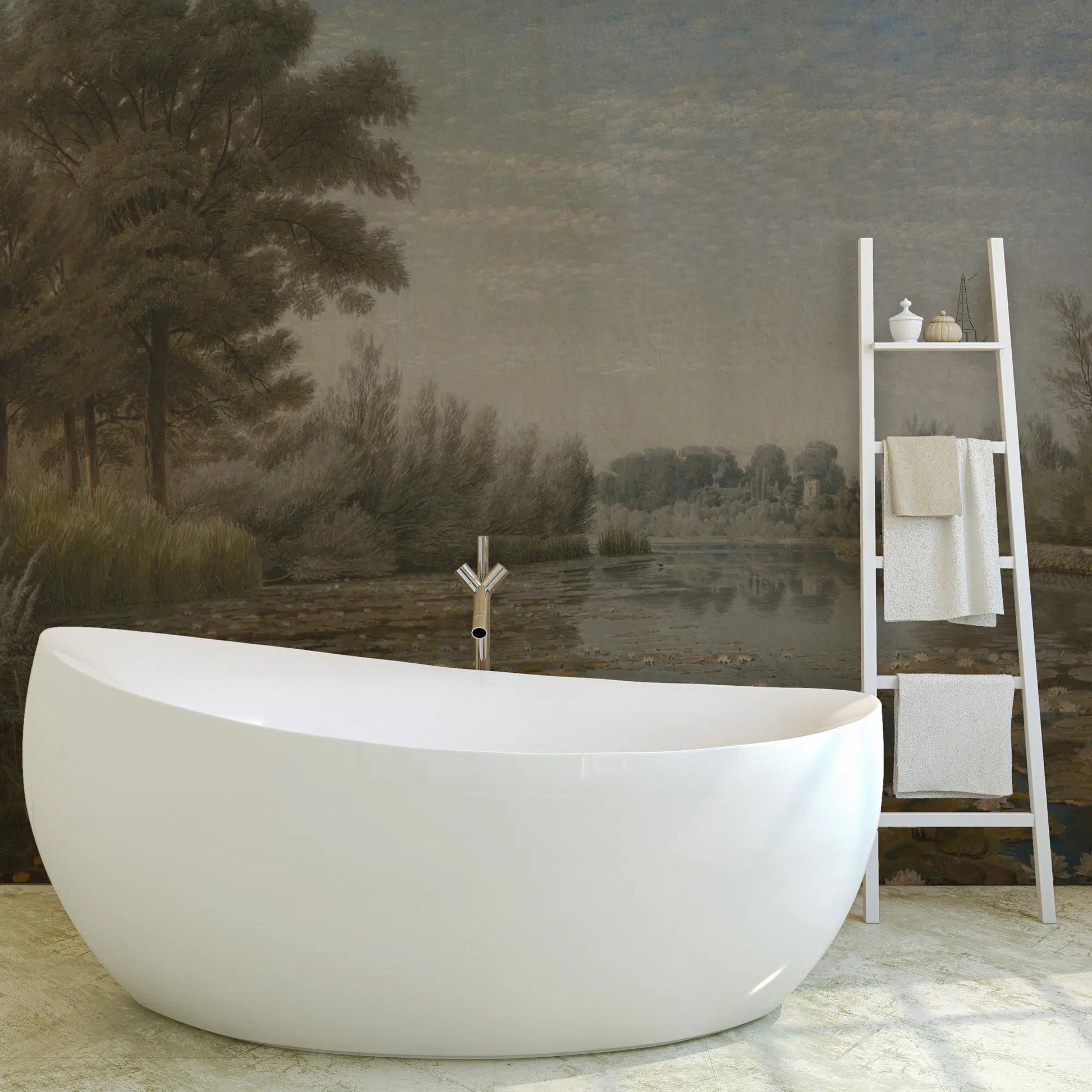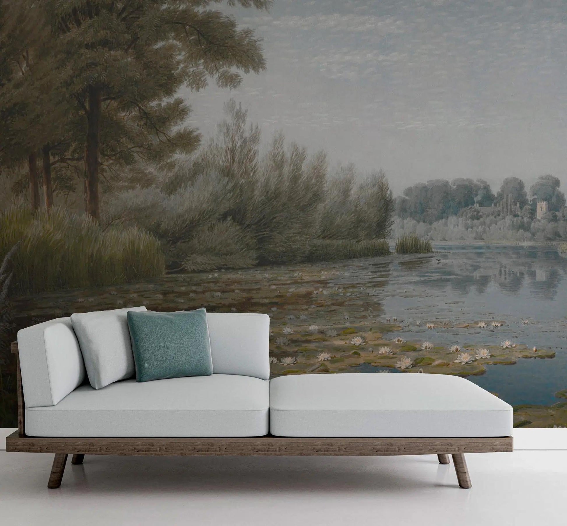 Lotus Flower Lake View Wallpaper, Nature Tual Wallpaper, Nature Landscape Mural, Painting Wall Mural, Peel & Stick Wallpaper, Tree Wallpaper