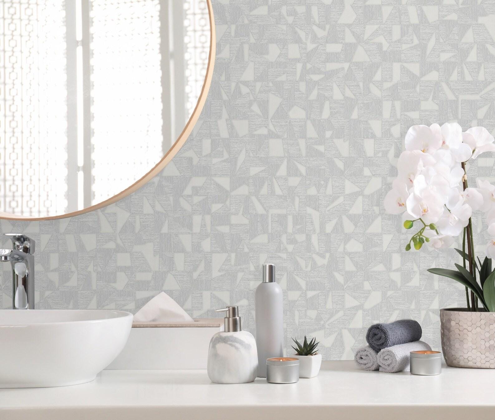 Luxurious Texture Light Gray Embossed Wallpaper with Abstract Geometric Pattern, Elegant Secret Shine Wallpaper, Elegant Modern Wallpaper