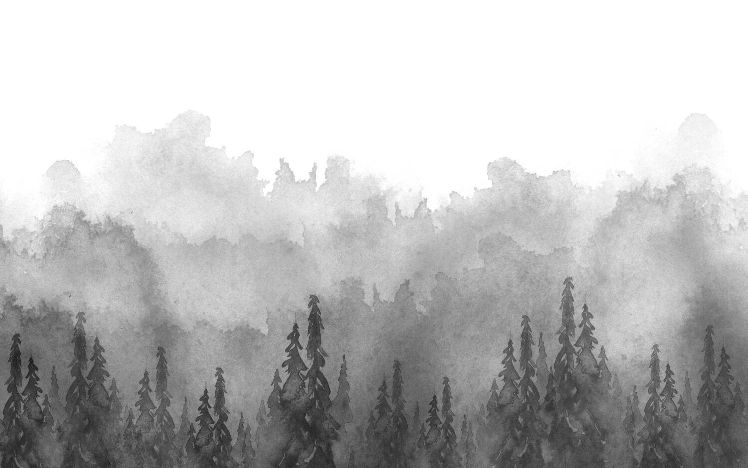 Misty Forest Watercolor Technique Wallpaper, Gray Wallpaper, Bohemian Wall Mural, Cool Peel and Stick Wallpaper, Dark Stylish Room Design