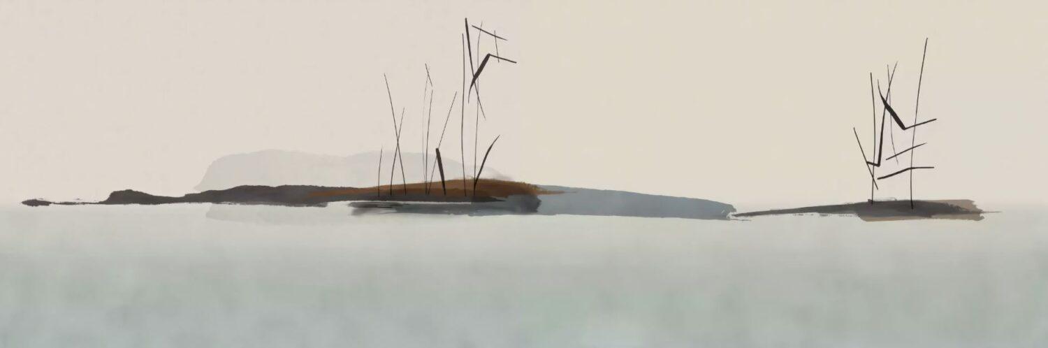 Pictorial Landscape Wallpaper, Tual Wallpaper, Nature Mural, Painting Wallpaper, Peel and Stick Calm Nature Themed Wallpaper in Cold Tones