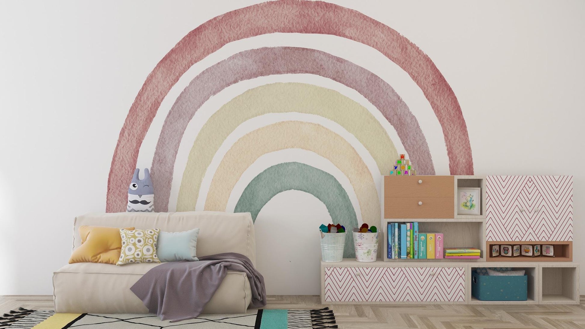 Rainbow Kids Wallpaper in Soft Colors, Watercolor Wallpaper for Kidsroom, Pink Wallpaper Nursery, Colourful Cute Baby Girl Wallpaper