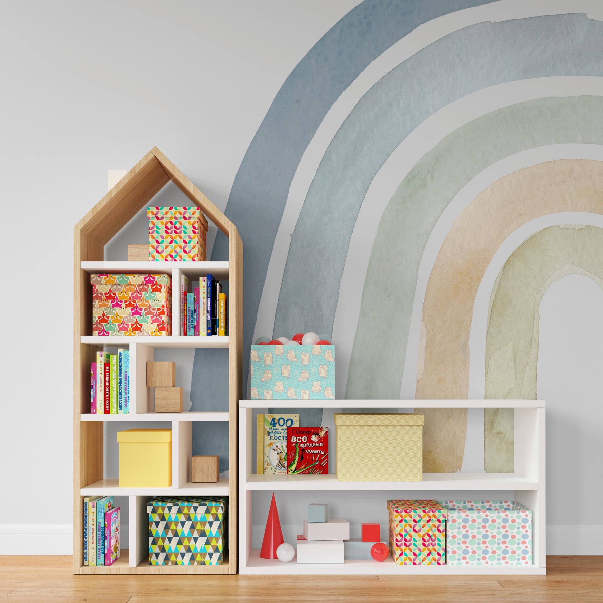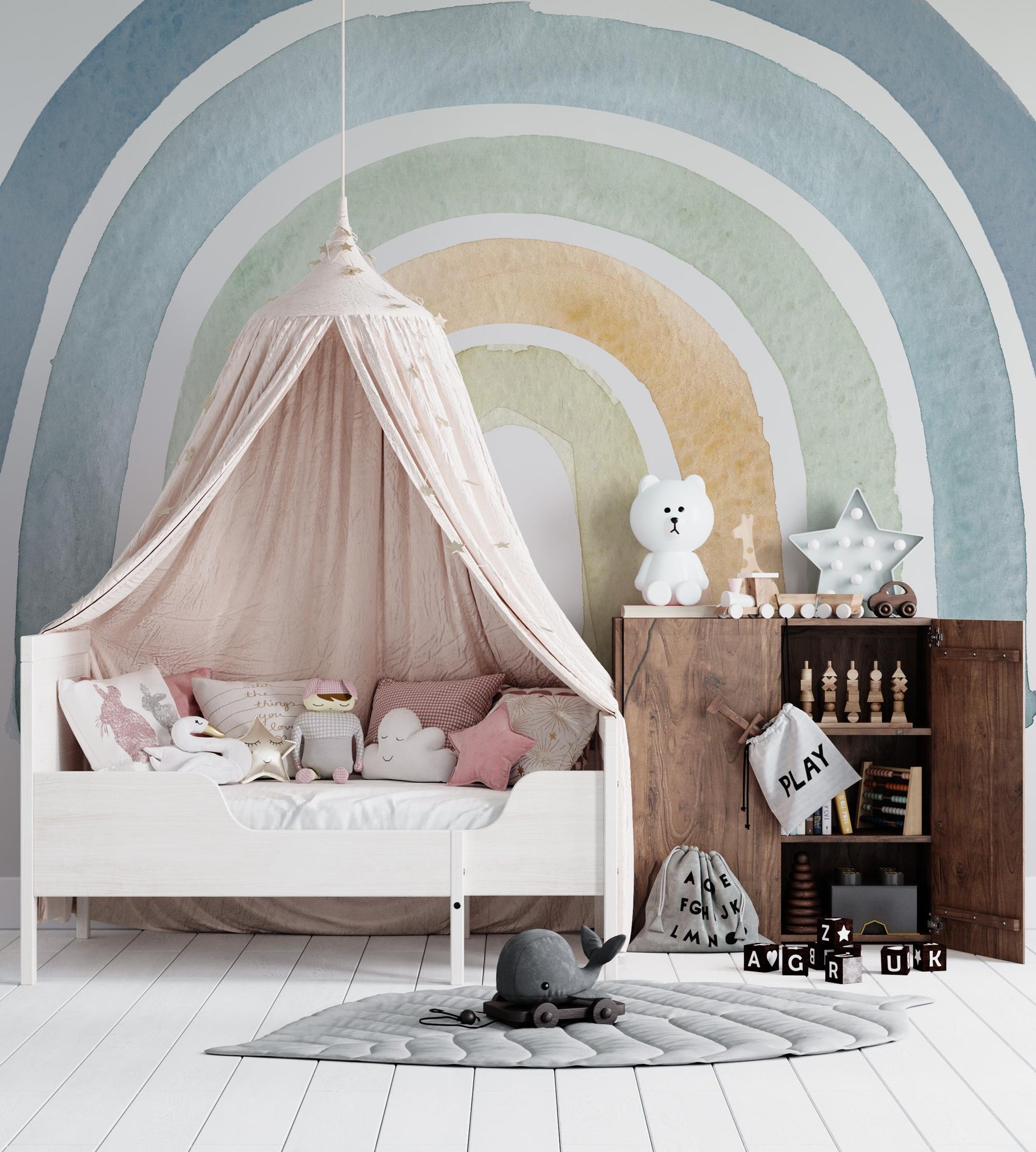 Rainbow Wallpaper in Shades of Blue, Wallpaper Nursery in Soft Color, Child Wallpaper, Peel and Stick Kids Wallpaper, Baby Boy Wallpaper