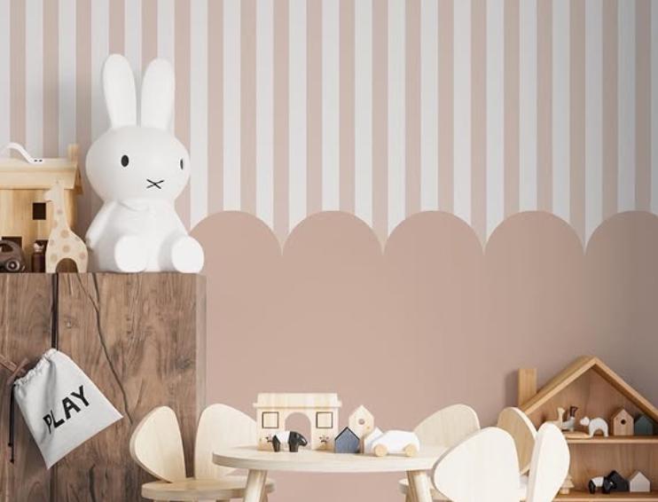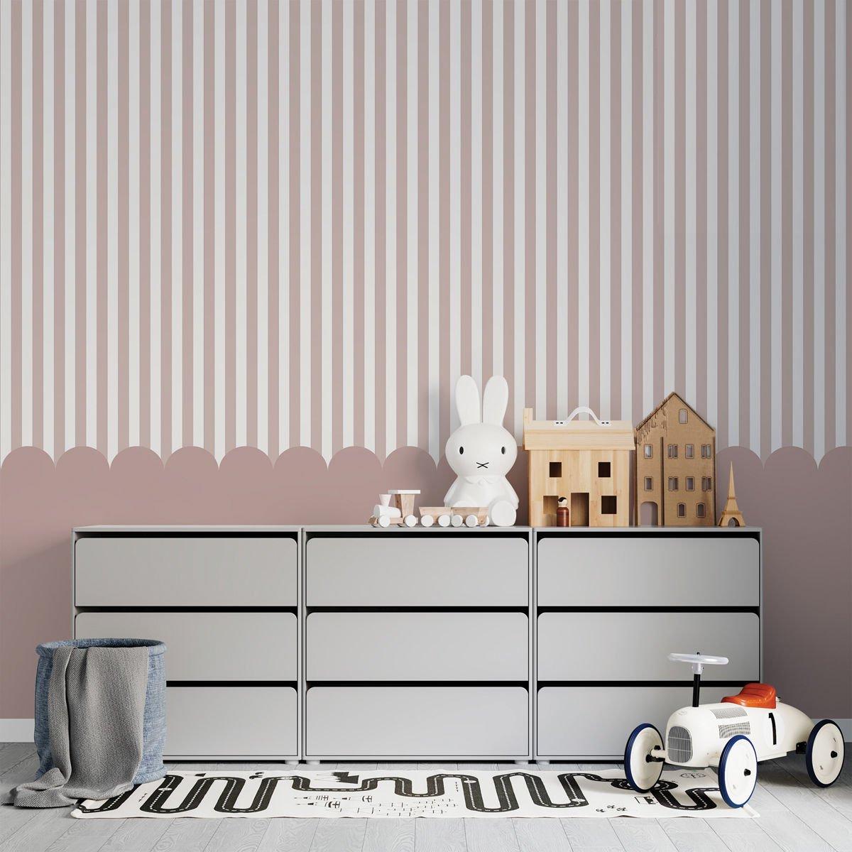 Ruffles and Stripes Wallpaper in Pink, Watercolor Kid Mural, Watercolor brush Wallpaper Nursery, School Wallpaper, Pink Baby Room Wallpaper