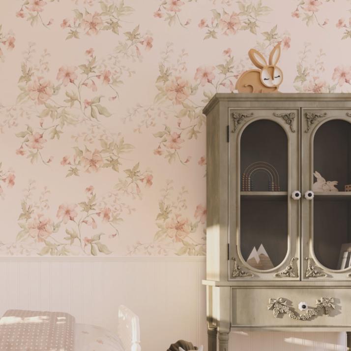 Soft Pink Color Flowers Baby Girl Wallpaper, Flower Garden Baby Girl Wallpaper, Art Wallpaper Nursery, Watercolor Floral Wallpaper