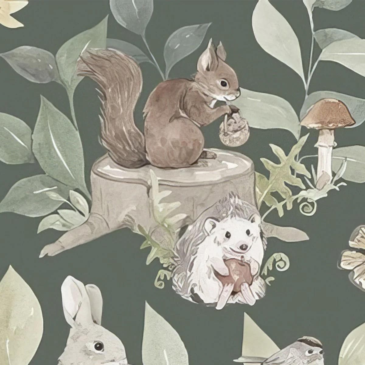 Squirrel Rabbit Hedgehog Forest Wallpaper For Kidsroom, Cute Animals Wallpaper Nursery, Nature Childrens Wallpaper, Baby Room Wallpaper