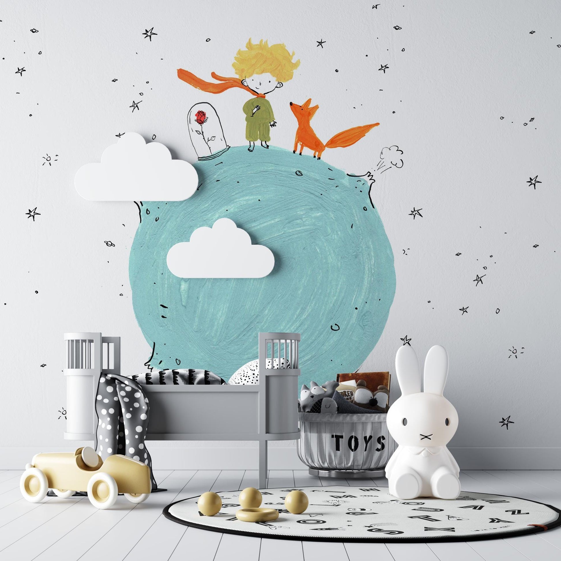 The Little Prince Wallpaper for Kidsroom, İllustration Wallpaper Nursery , Children's Tale Wallpaper , Fun Baby Wallpaper, Art Kid Wallpaper