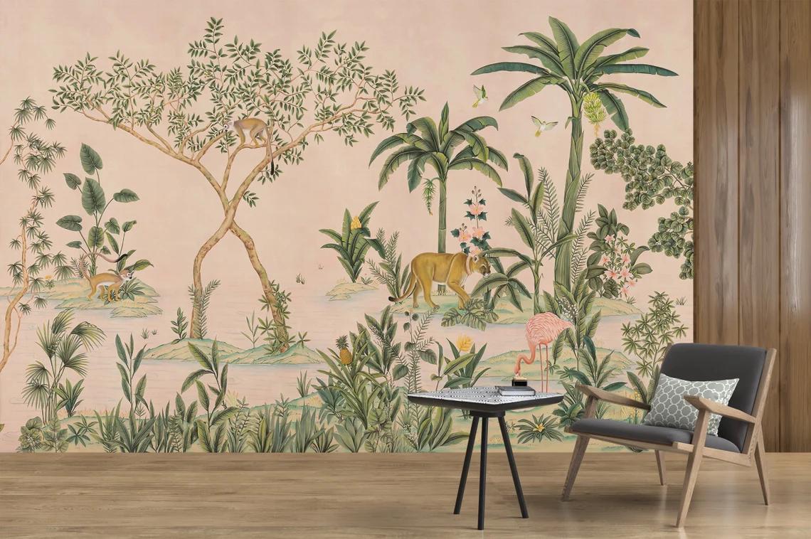 Tropical Forest With Animals Wallpaper, Tropical Plants Wallpaper, Rainforests Themed Nature Wallpaper, Exotic Plant Floral Wallpaper