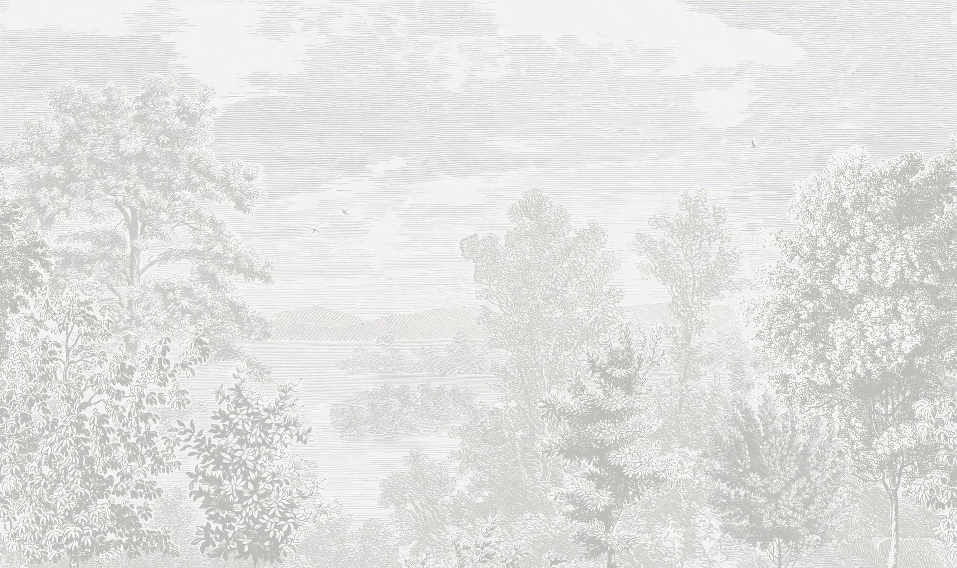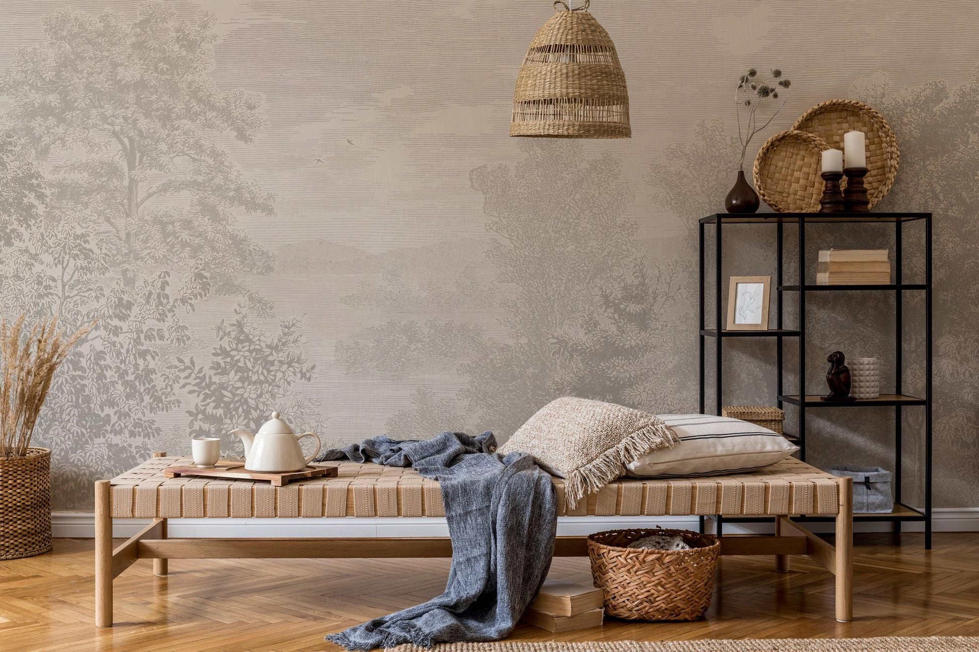 Valley View in Soft Tones Trees Wallpaper, Soft Drawwing Wallpaper, Bohemian Wallpaper, Trees Mural, Peel and Stick Wallpaper, Wall Design
