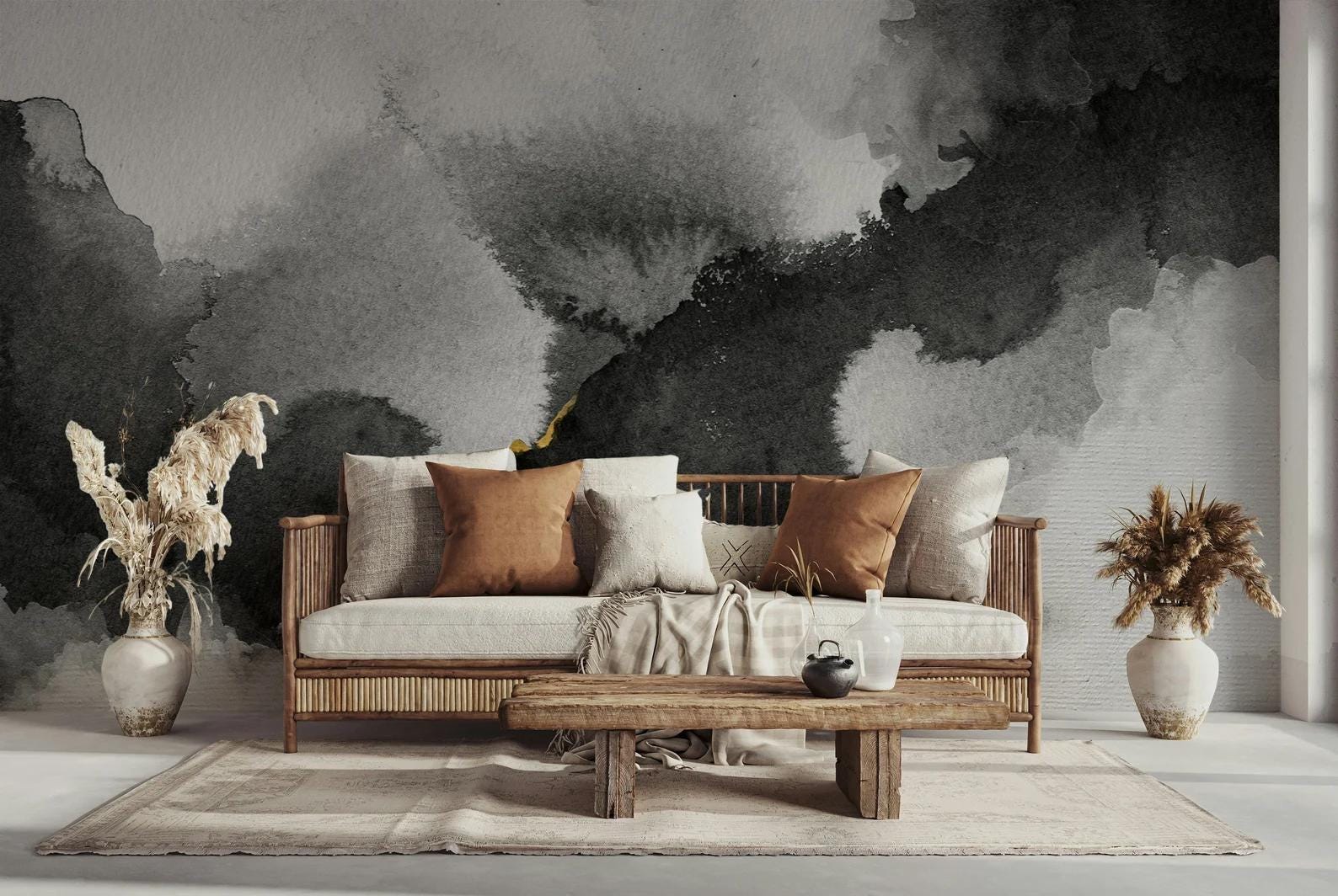 White Black Brush Effect Wallpaper, Boho Style Pattern Wallpaper, Monochrome Wallpaper, Watercolor Wallpaper, Abstract Pattern Wallpaper