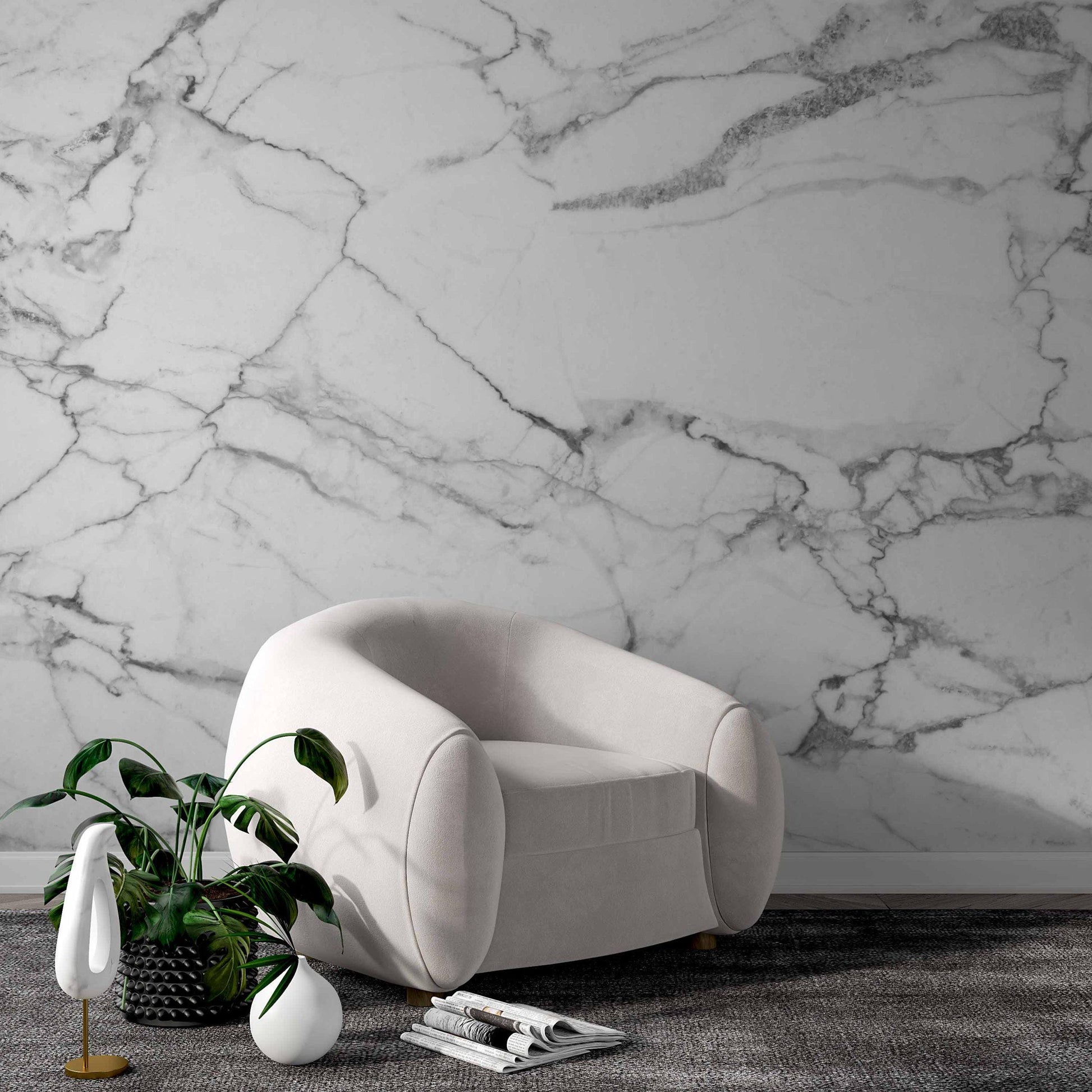 White Gray Carrara Marble Patterned Wallpaper, Design Abstract Peel and Stick Wallpaper, Modern Natural Looking Marble Wallpaper