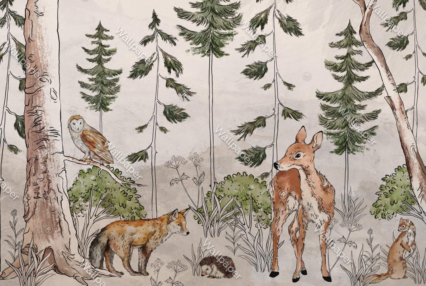 Wild Jungle Cartoon Animals Wallpaper For Kidsroom, Childrens Wallpaper, Wall Mural Nursery, Gazelle, Wolf, Owl, Hedgehog Wallpaper