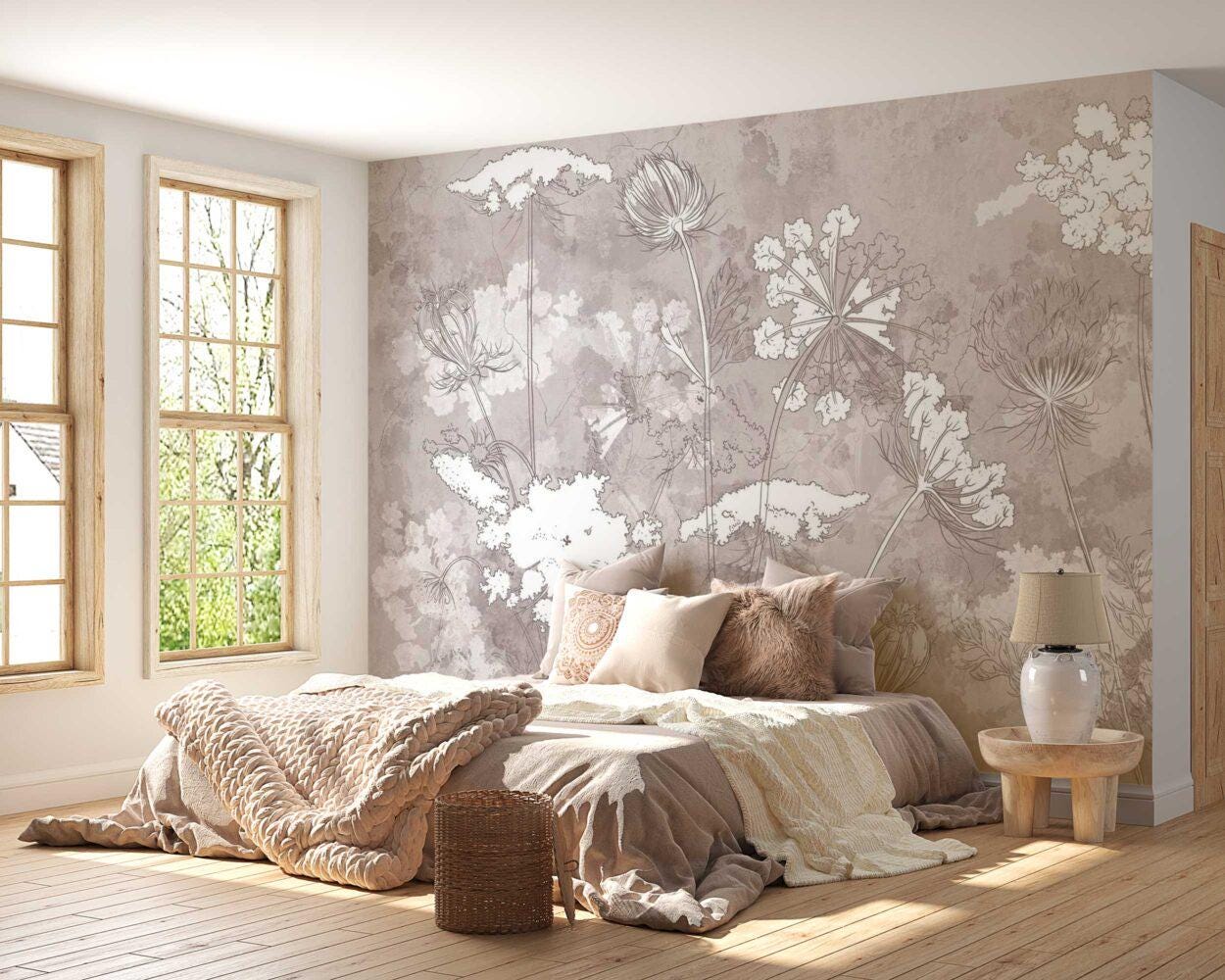 Wildflowers Wallpaper, Floral Wallpaper, Soft Color Romantic Wall Mural, Peel and Stick Wallpaper, Drawing Wallpaper, Flowers Wallpaper