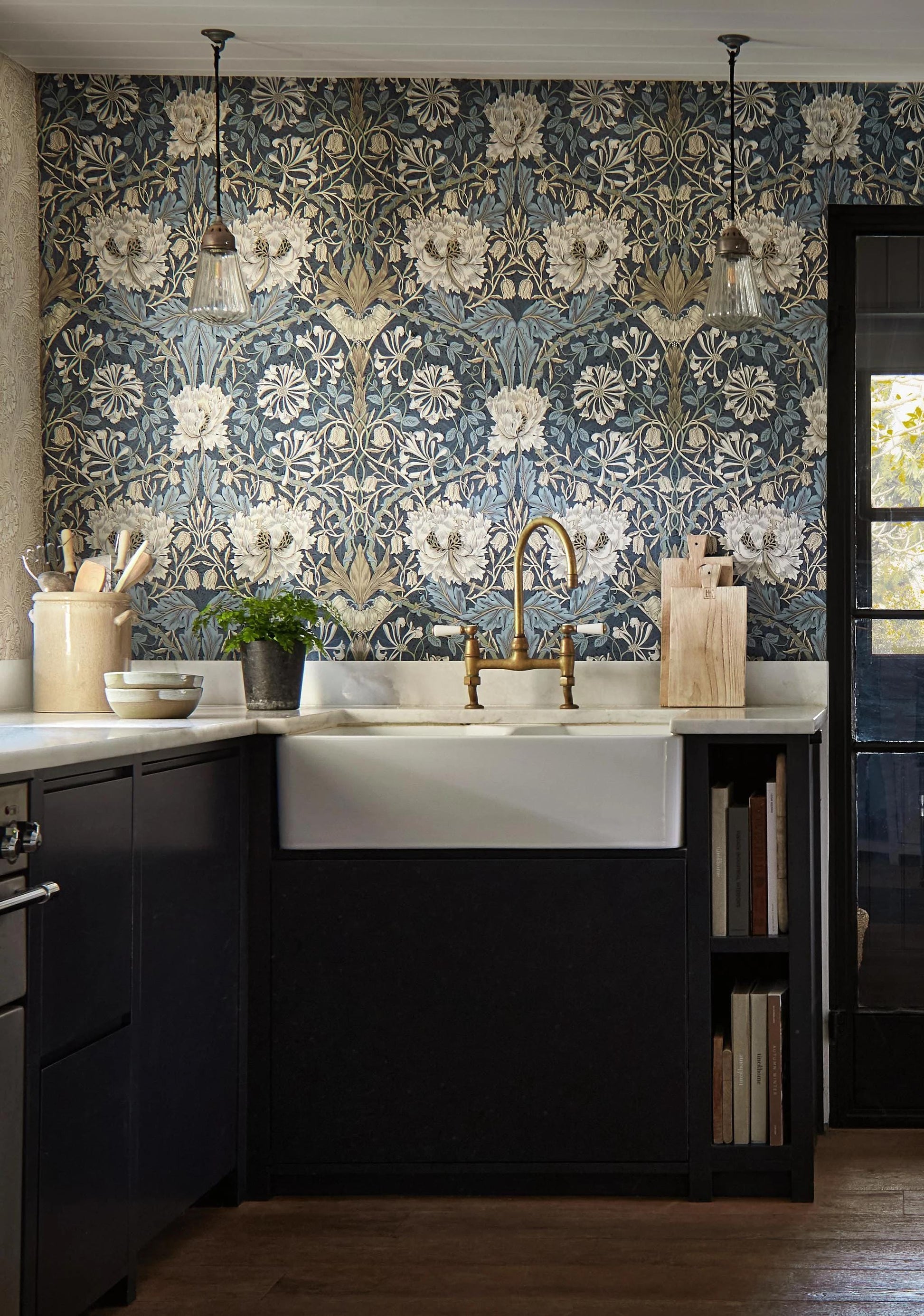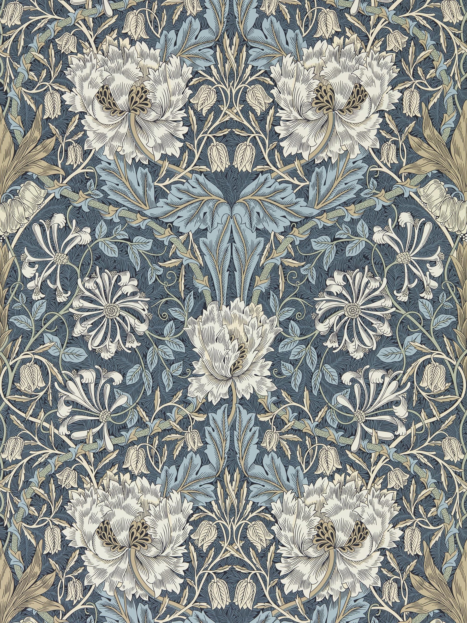 William Morris Indigo Wallpaper, Vintage Nature Wallpaper, Romantic Wall Mural, Peel and Stick Wallpaper, Drawing Art Wallpaper